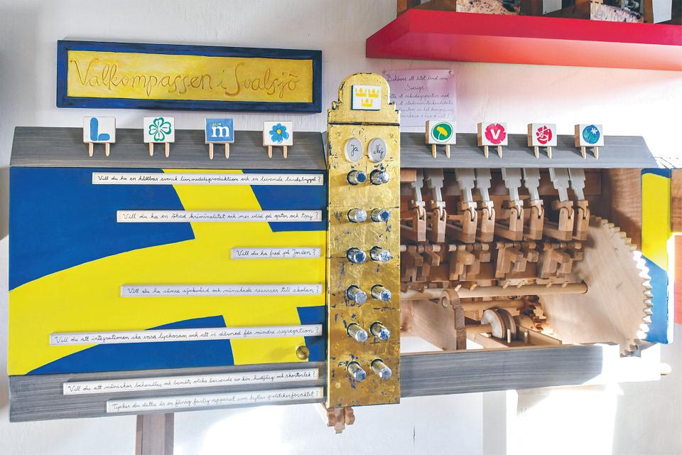 SVALSJÖ Något höstrusk var det inte tal om den sista lörda gen i oktober, som man kanske skulle kunna förvänta sig Istäl l e t s k e n s o l e n f r å n e n k l a r b l å h i m m e l n ä r A f f ä r e n S v a l s j ö med Pers Mekaniska kabinett bjöd in till just Höstrusk Nej, det hade passat bättre igår när det regnade, säger l de Anna Hell f bakom dis ken när hon serverar gästerna ä p p e l k a k a S I D A N