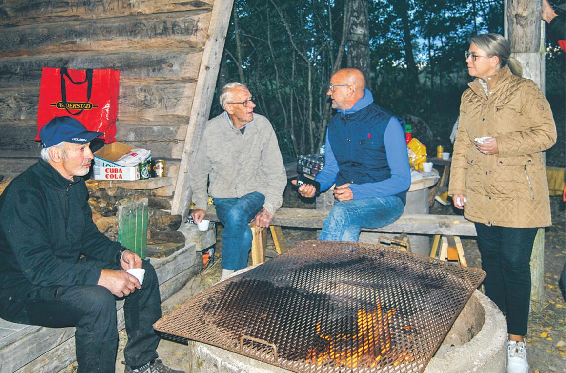 Kul att vara med och fira in vår nya grillplats, säger ett glatt gäng Nu Björn får du klippa till, säger Hasse Till invigningen behövs musik och den står Börje och Hasse för Stellan har fixat korven och nu är den klar Mörkret har sänkt sig och nu är det dags för kaffe Här är det samspråk vid elden från vänster Stellan, Börje, Magnus och Annicki