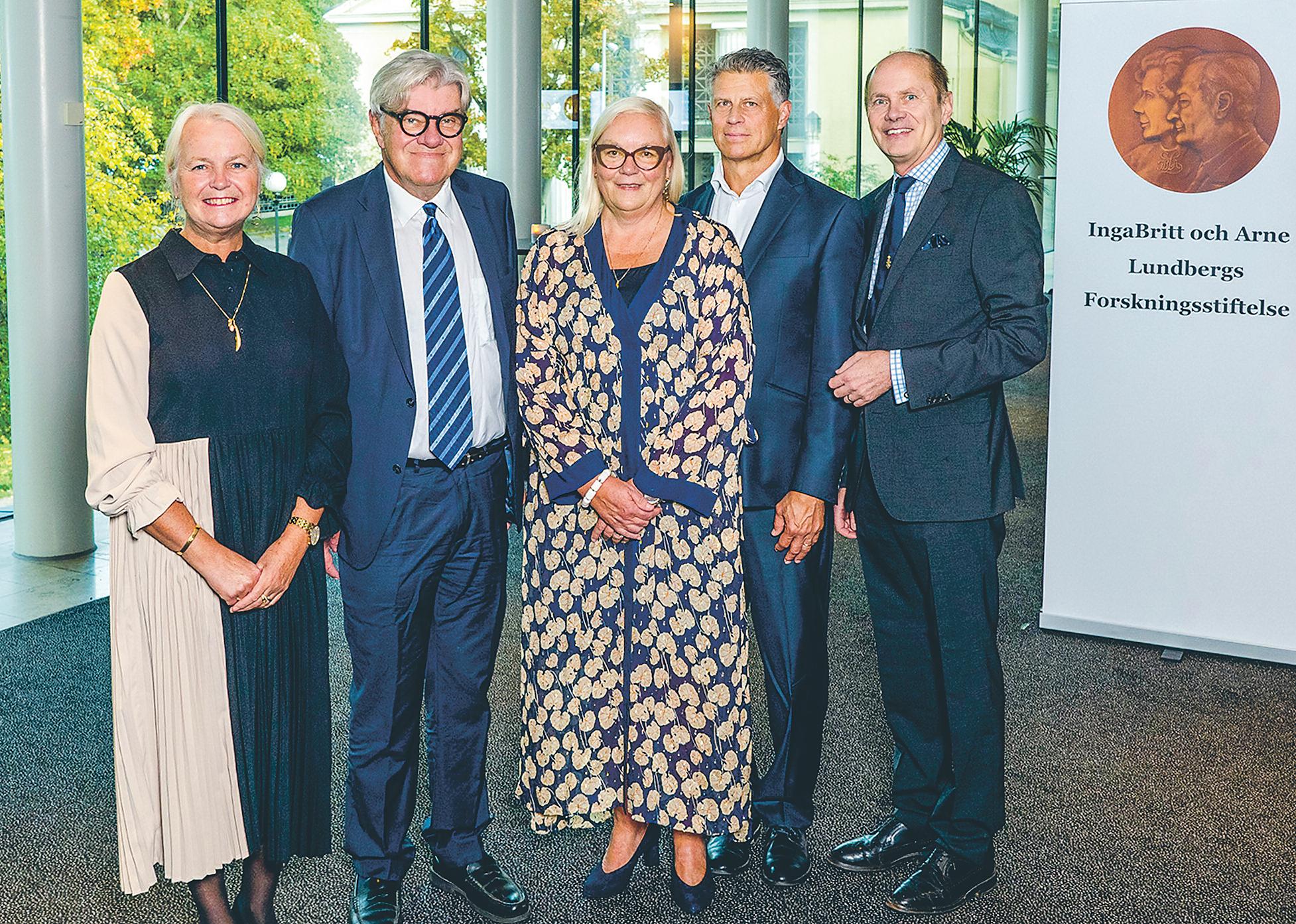 Styrelsen Lundbergs Forskningsstiftelse, från vänster Gunilla Westergren Thorsson, Olle Larkö, Christina Backman (ordförande), John Vivstam och An ders Klein Bild: MAGNUS GOTANDER