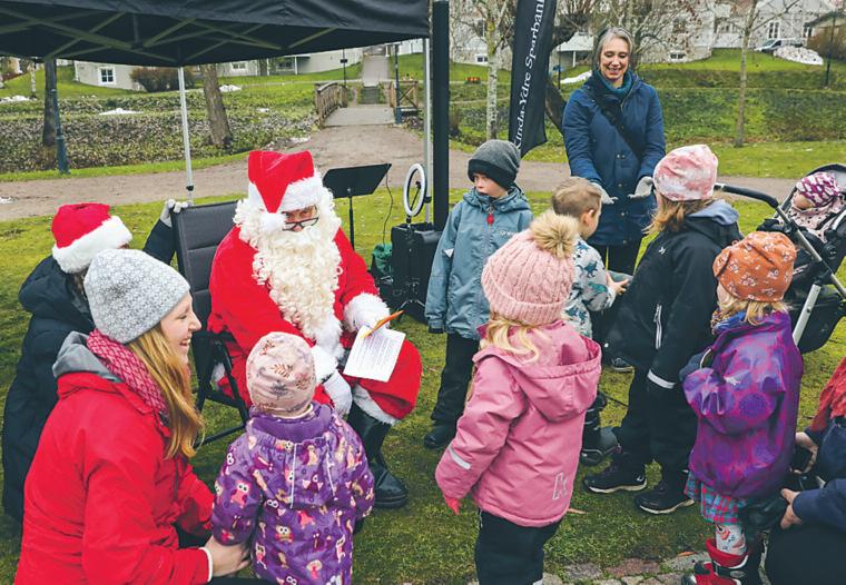 Ydre sid 16 Besökarna kom i en jämn ström till julmarknaden i Högmåla gamla skola och bjöds på glögg på av en jultomte på skoltrappan Trots bistrare ekonomiska tider ver kar intresset för att köpa genu int hantverk, goda ostar, hem bakat och närproducerad glögg stort