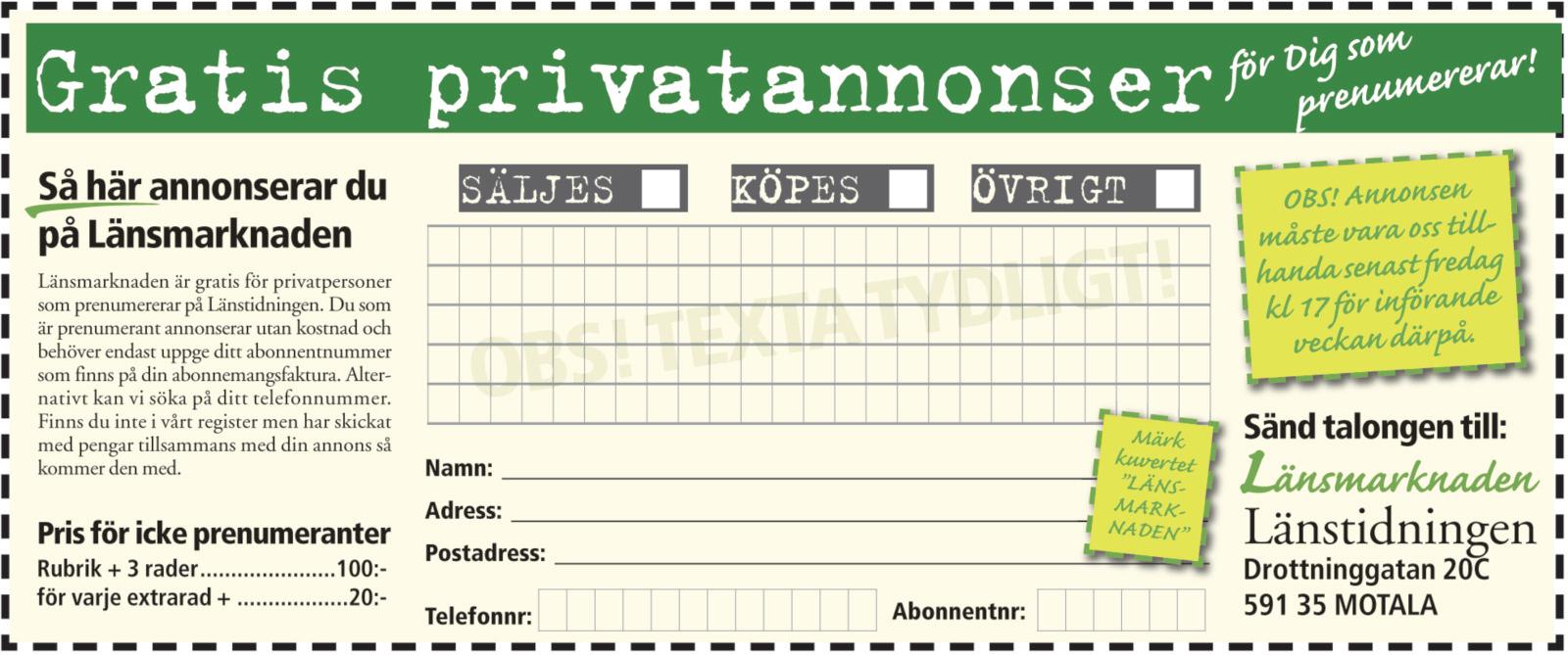 Beställ provprenumeration på www.lanstidningen se (Gäller endast en gång inom ett år)