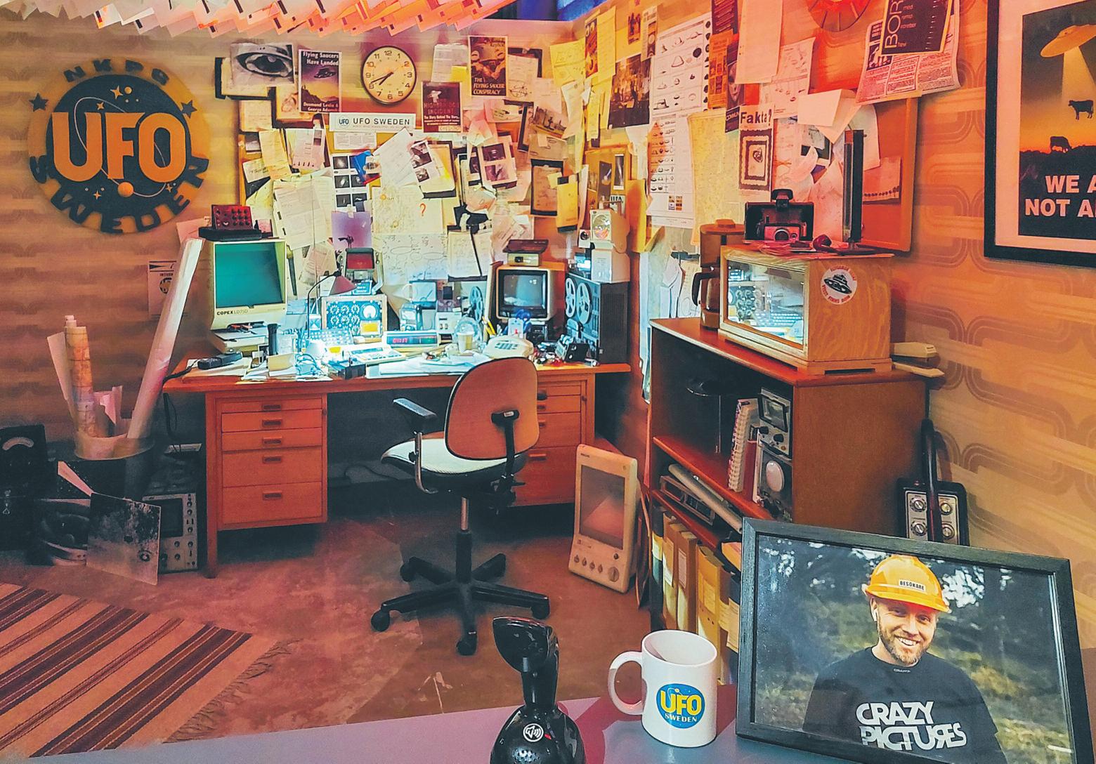 till Norrköpings filmkollektiv C r a z y P i c t u r e s f i l m “ U F O Sweden” som hade premiär på juldagen och har blivit en stor snackis i filmsverige Det var det Norrköpingsbas e r a d e f i l m k o l l e k t i v e t C r a z y P i c t u r e s o c h N o r r k ö p i n g s filmfond som först kontaktade museet med idén om en ufoutställning Crazy Pictures var d å m i t t i i n s p e l n i n g e n a v UFO Sweden, den uppmärksammade storfilmen som ins p i r e r a t s a v a r k i v e t o c h h a r Sverigepremiär i jul Filmteamet funderade på hur rekvisit a n s k u l l e k u n n a l e v a v i d a r e efter inspelningen – Vi kände att den värld som v i u p p t ä c k t e i f i lmskapandet var för spännande och mångb o t t n a d f ö r a t t e n b a r t b l i e n film Därför är det fantastiskt att kunna bjuda in till en utställning där man kan djupdyka in i UFO-världen, ta del av s k a p a n d e t b a k o m k u l i s s e r n a och all härlig 90-talsrekvisita vi