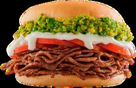 Hamburguesa, queso gouda fundido, palta, mayonesa casera
