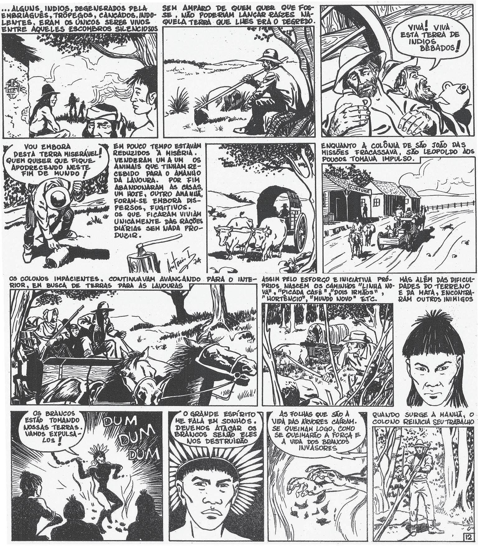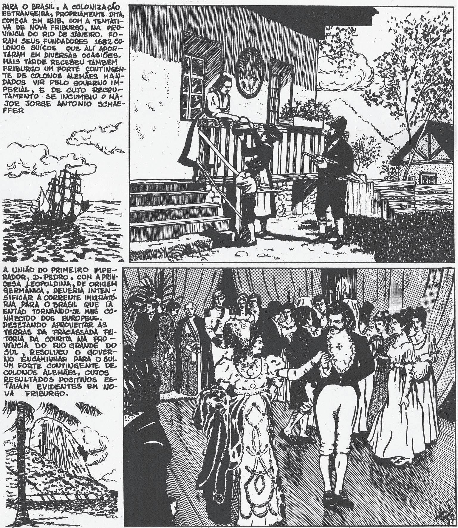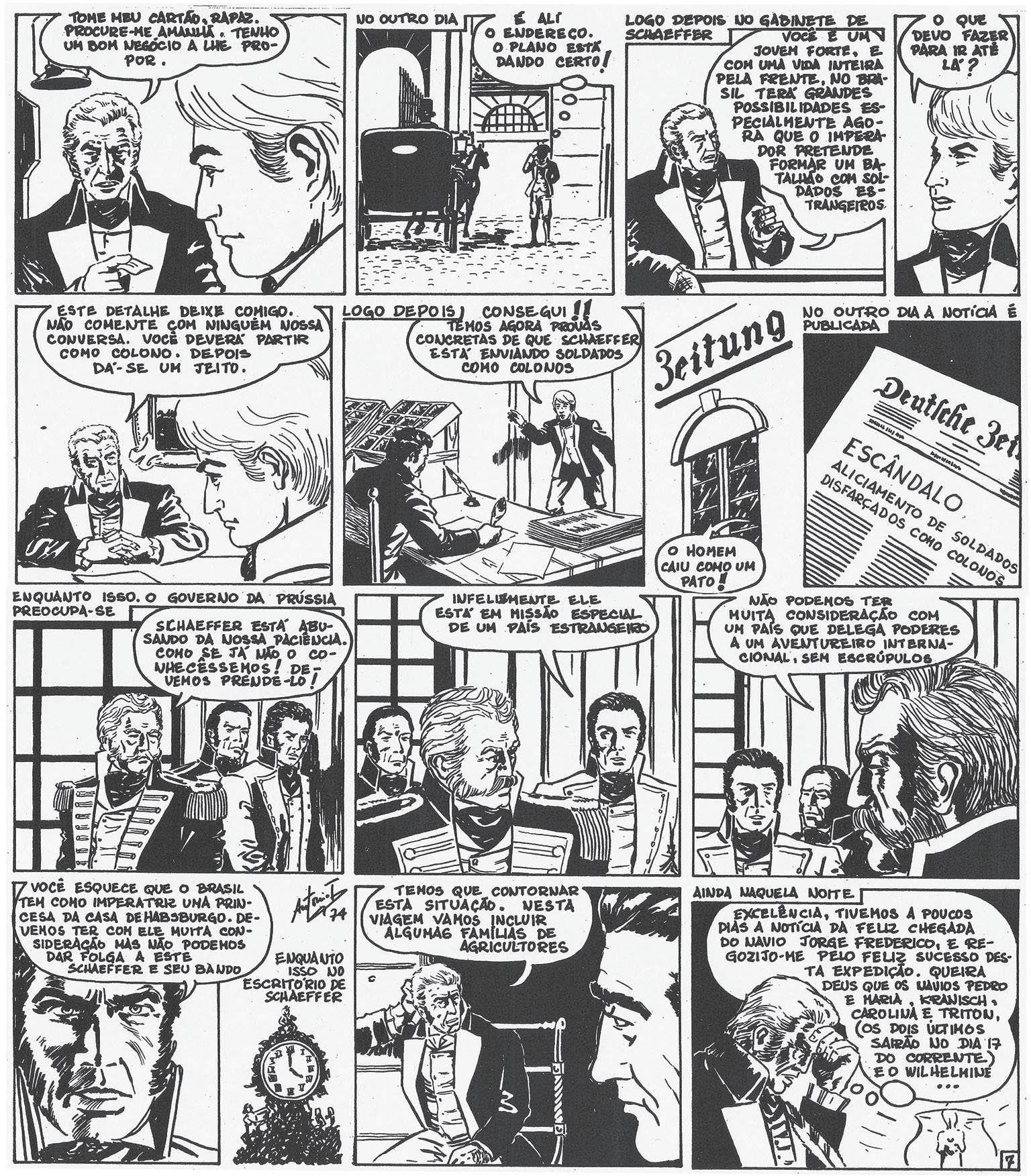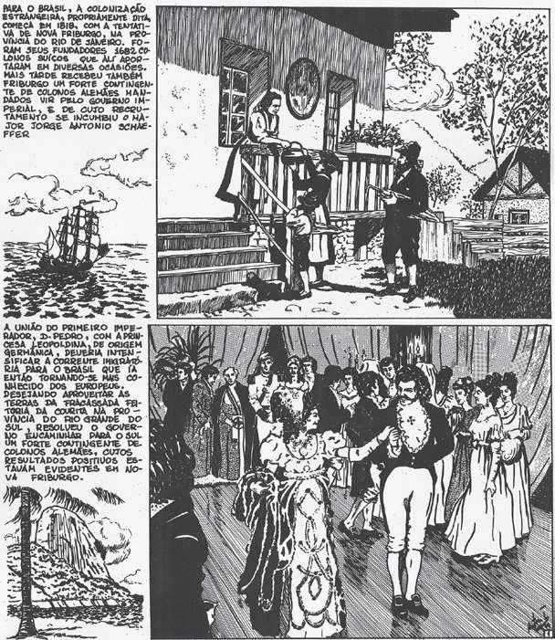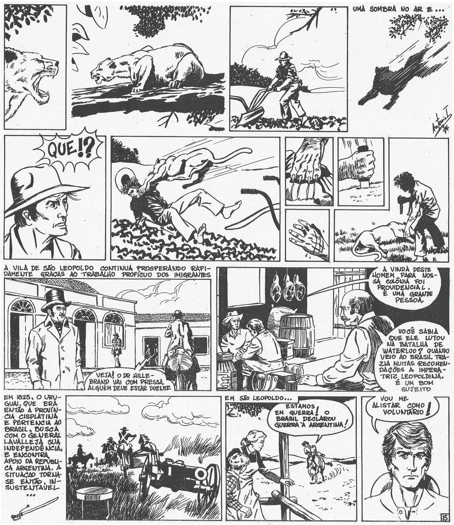 Desenhista conta história da colonização alemã no estado em série sobre os 192 anos de imigração. Diálogos de personagens reais esclarecem com detalhes a epopeia germânica, remetendo o leitor a uma sequência cinematográfica.
