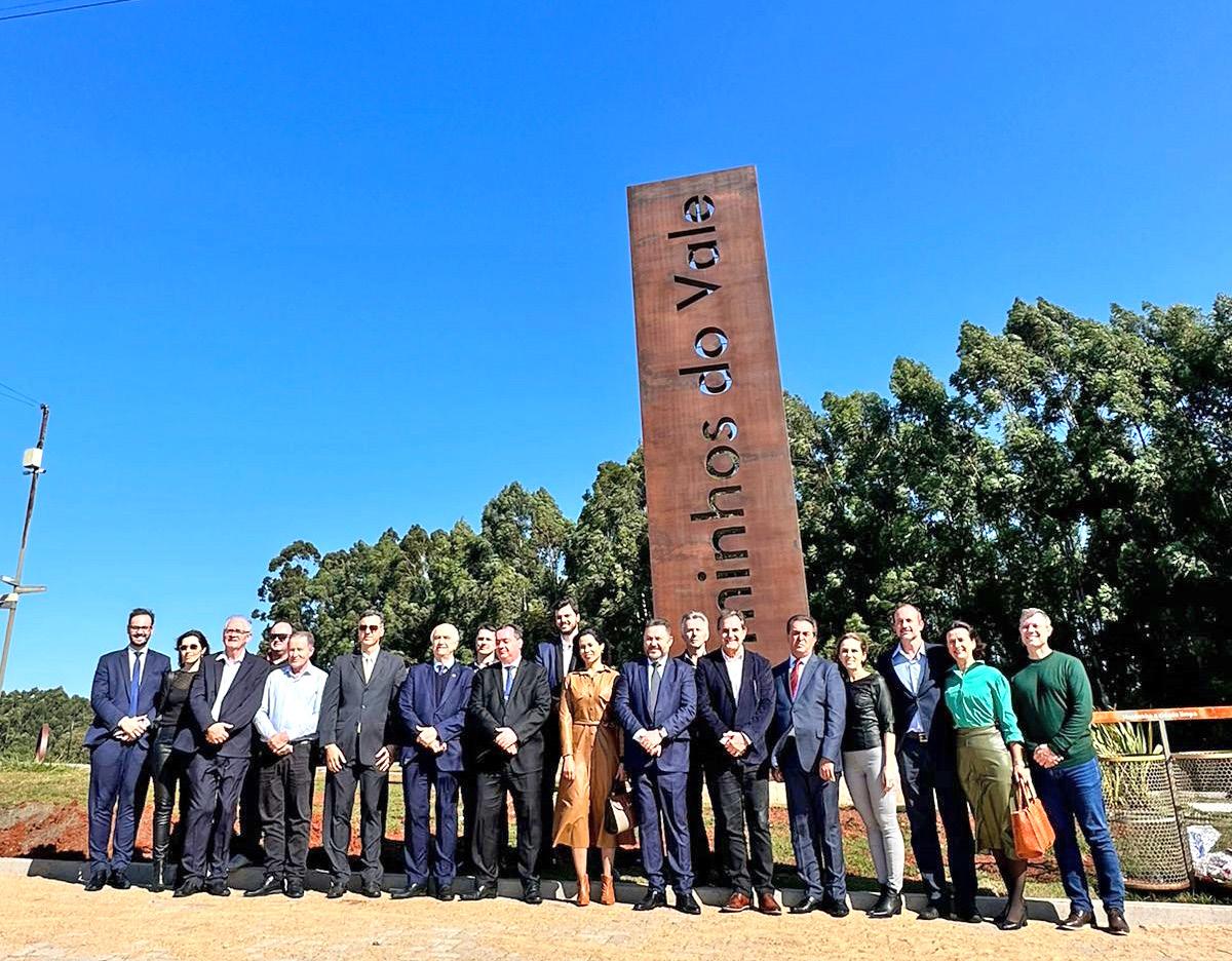 A assembleia conjunta da Associação dos Municípios do Vale do Taquari (Amvat), Associação dos Municípios do Alto Taquari (Amat) e Associação dos Vereadores do Vale do Taquari (Avat) recebeu o Corregedor-Geral do TJ/RS, Giovani Conti. O desembargador falou sobre os recentes processos de inovação no judiciário gaúcho, e instigou os presentes a pensarem em uma vara judicial especializada em saúde. Após a palestra, os gestores, parlamentares e autoridades do setor judiciário visitaram o 386 Business Park, às margens do trecho estrelense da rodovia federal. Por lá, eles posaram em frente às obras do empreendimento Caminhos do Vale, um espaço criado para se tornar o “portal de acesso” aos turistas, e que pode receber recursos dos municípios para a conclusão.