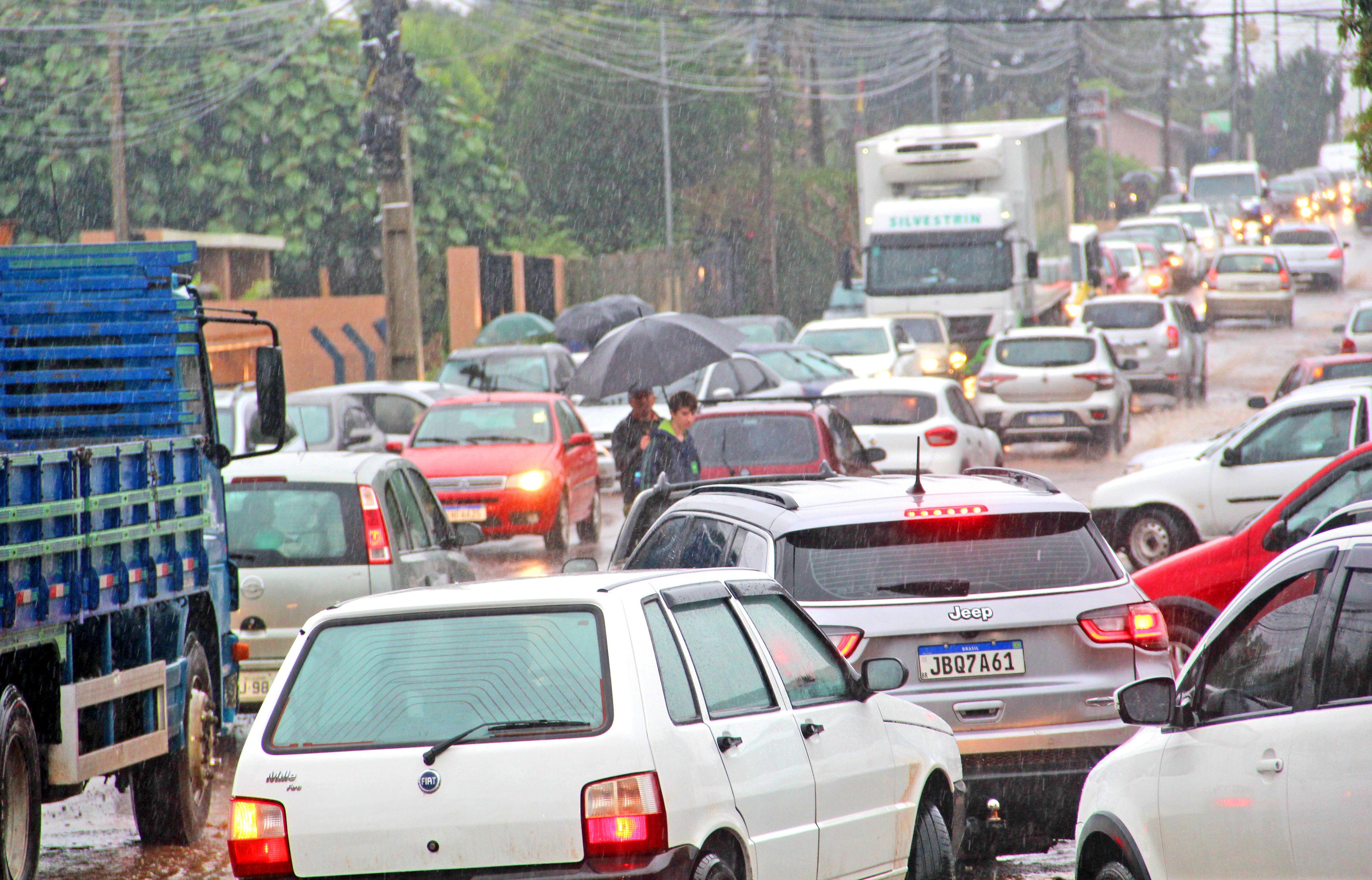 No dia em que choveu mais de 80 milímetros em Lajeado, principal rua de um dos bairros mais populosos da cidade conviveu com transtornos. Água sobre a pista causou lentidão e acidentes no trânsito