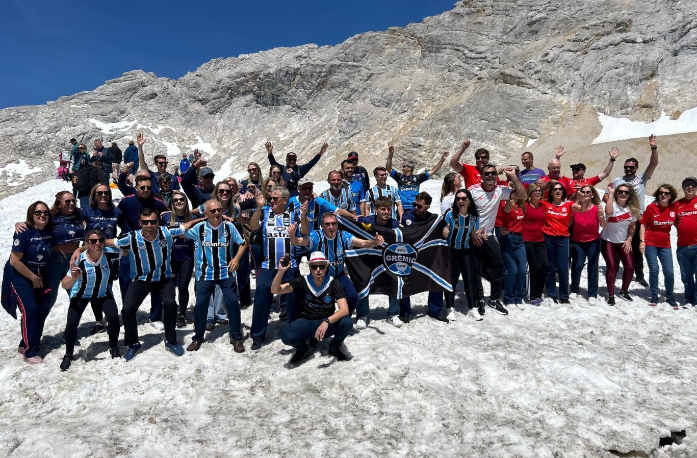 A primeira apresentação dos Grupos Folclóricos no pico dos Alpes Germânicos. O ato chamou a atenção de turistas que passavam pelo local. A neve e o frio não foram impedimentos para que a