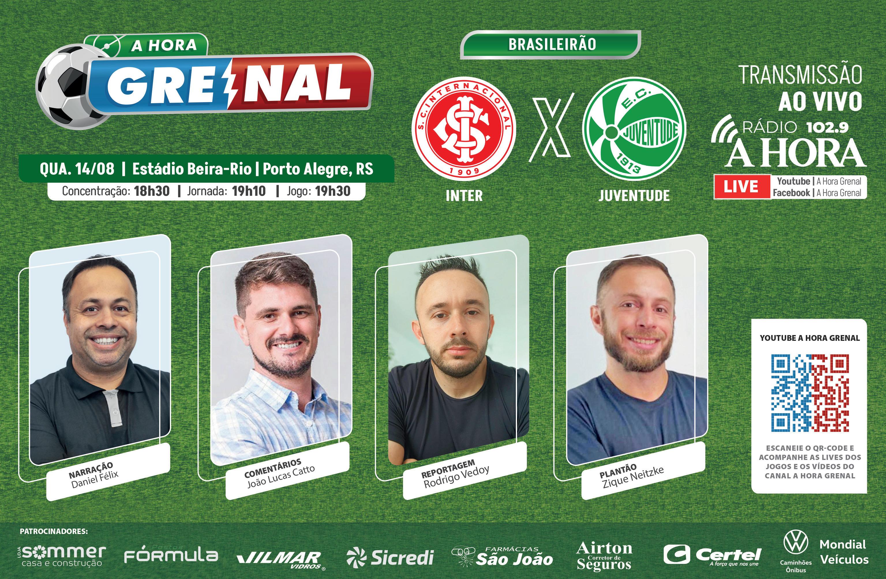 erto de entrar na zona de rebaixamento, o Internacional começa na noite de hoje a recuperar os cinco jogos atrasados devido às enchentes de maio. O primeiro compromisso é emblemático. Às 19h30min, o Colorado recebe o Juventude, no Estádio Beira-Rio. O reencontro de Roger Machado com o seu ex-clube será o sexto encontro entre as duas equipes neste ano. A Rádio A Hora transmite o confronto.