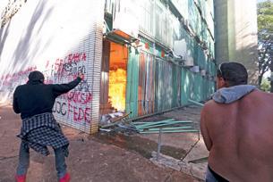 Um campo de batalha onde baderneiros quebram o patrimônio público em defesa mais de seus partidos e ideologias do que direitos, basta ver a cor das bandeiras pois não se vê uma sequer verde amarela! Depois o presidente chama o Exército querem reclamar [...] Alcindo Naycinger de Melo
