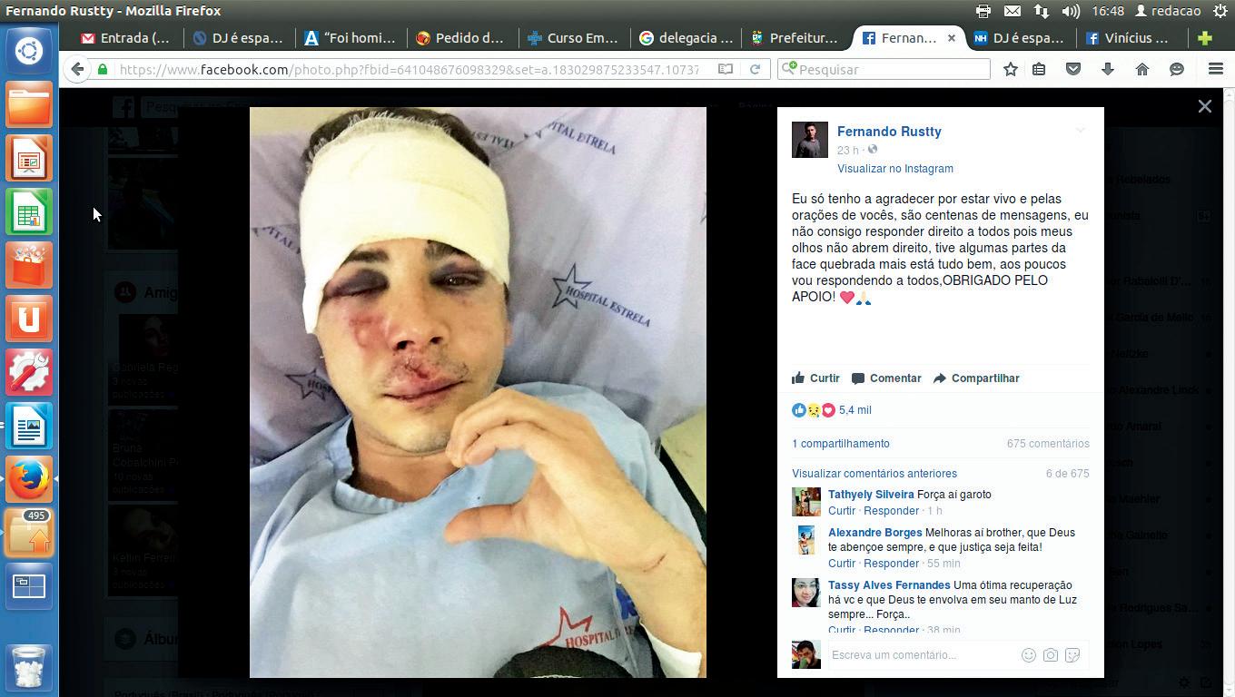 Na saída de uma festa na madrugada de domingo, o DJ Luís Fernando Ávila, 22, foi surpreendido por quatro homens armados com paus e facões.