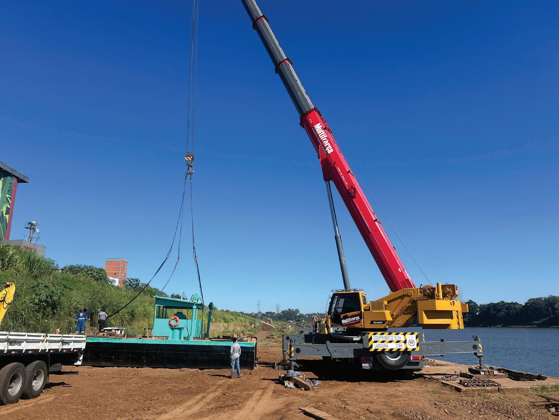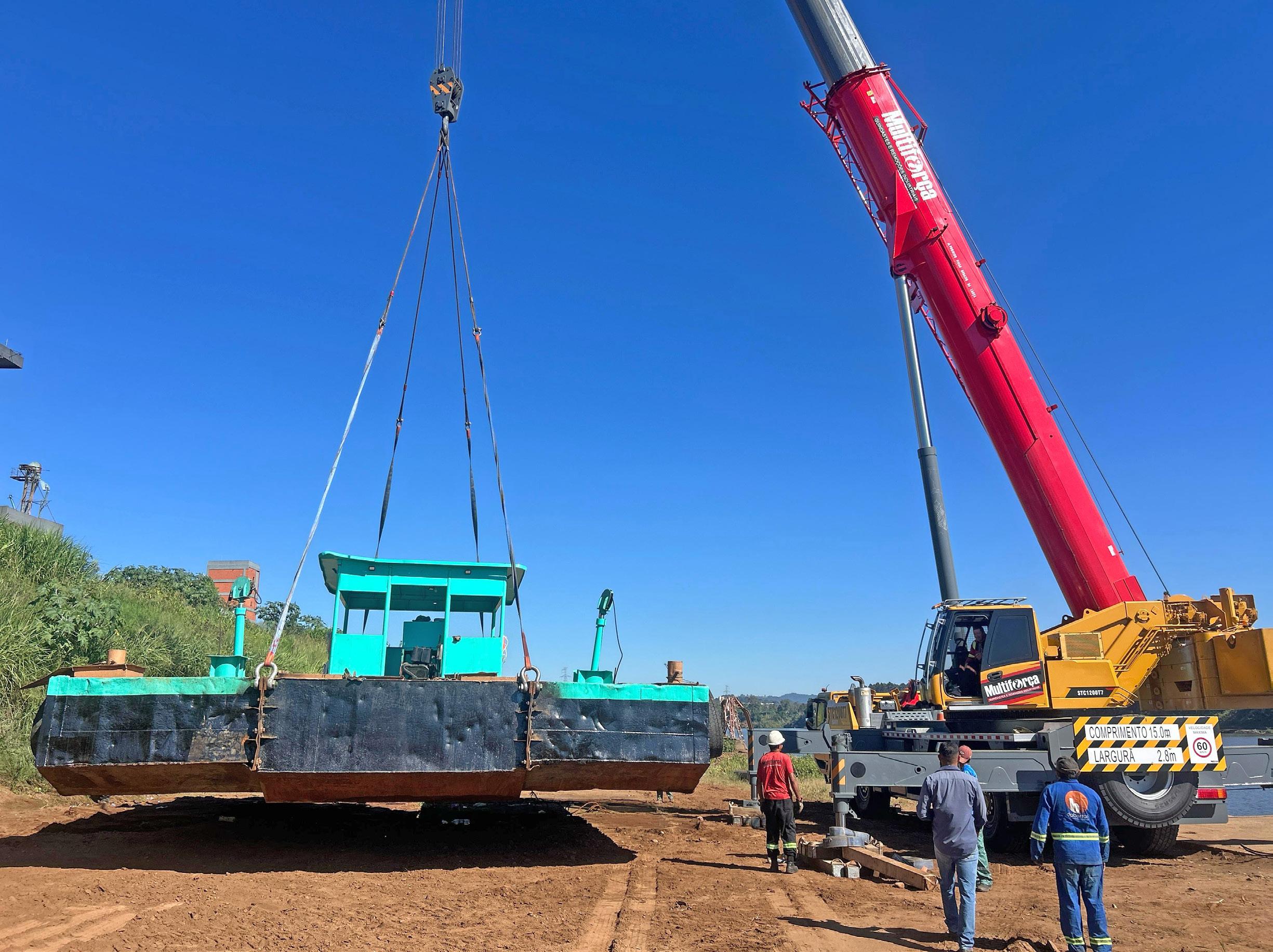também foi contemplado pela iniciativa do Estado. Os equipamentos, como balsas e escavadeiras foram colocados na água pelo Rio Taquari.