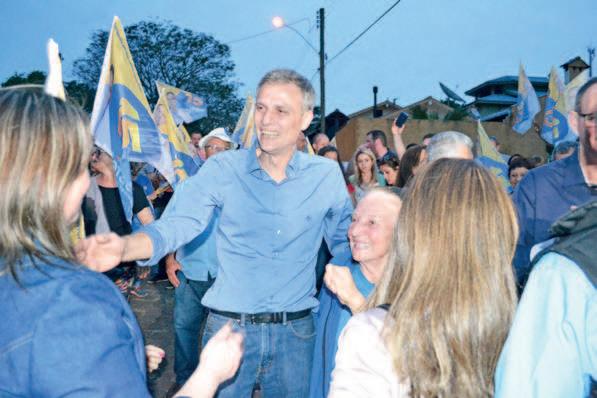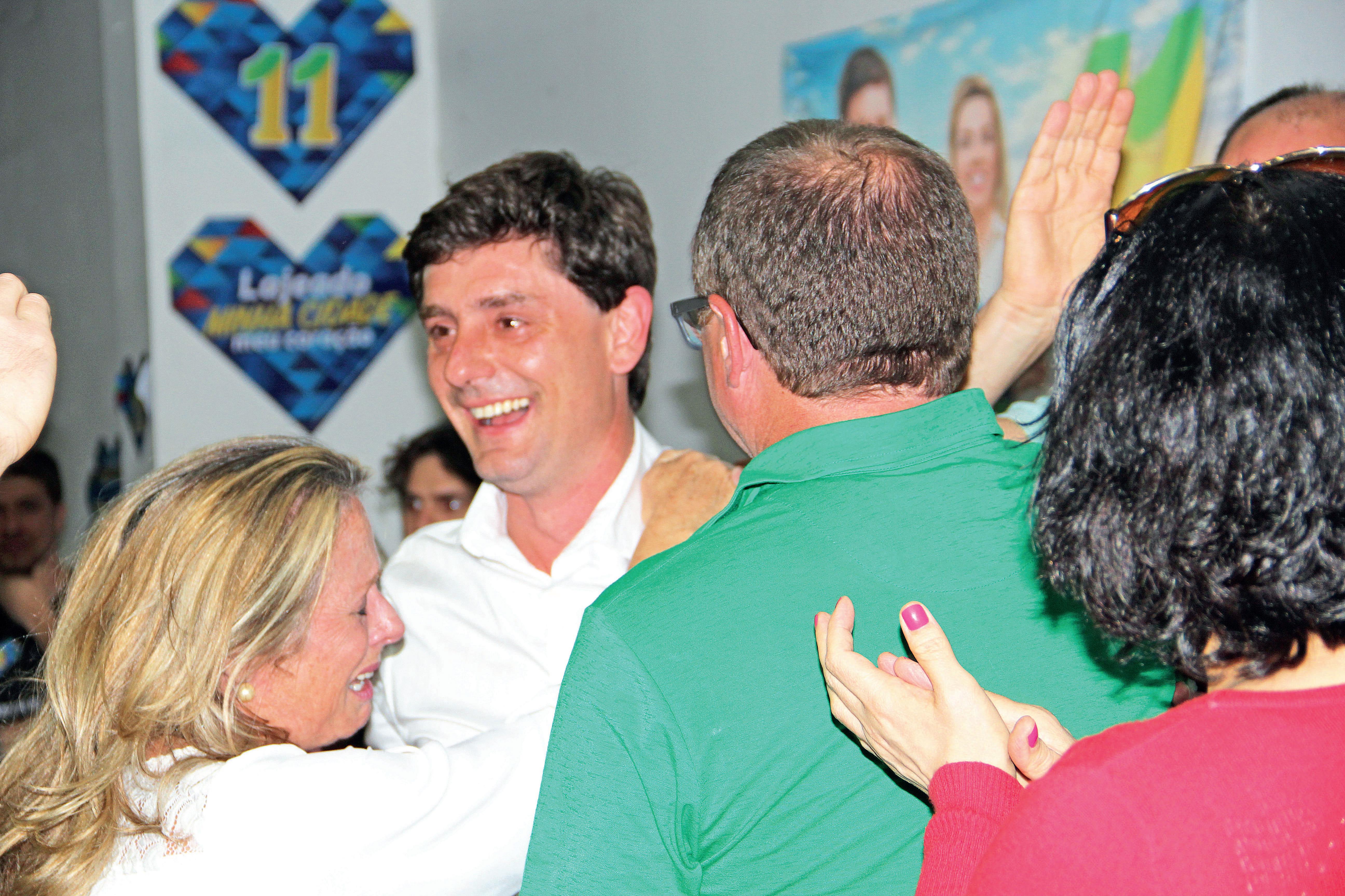 separada no diretório. Apenas pessoas próximas e líderes dos partidos tinham acesso ao local. Um misto de emoção e ansiedade precedeu a abertura dos primeiros resultados. O grito de vitória chegou quando o percentual de apuração alcançou 80% das urnas. Naquele momento, os cabos eleitorais e os candidatos a vereador da aliança já comemoravam. As primeiras palavras do prefeito eleito foi de elogio à equipe de campanha. “Tivemos muitos voluntários que aderiram à causa, sem nenhuma retribuição fi-