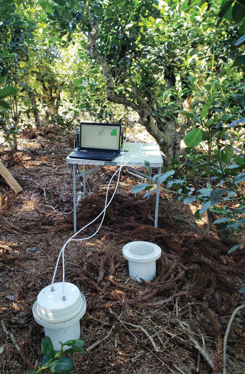 Pesquisador de solos Luciano Kayser, ao lado do trabalho sobre uxo de gases nos ervais