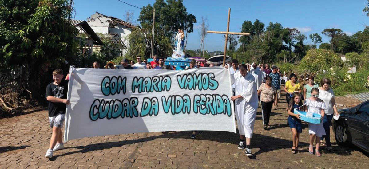 Pároco da igreja de Navegantes, o padre Afonso Antoni destaca que, mesmo com toda a destruição e em meio às ruínas do que um dia foi um bairro, a comunidade decidiu manter a procissão.