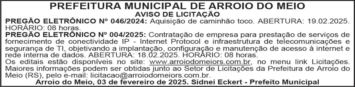 - Hoje ocorre nova reunião entre representantes do chamado “Grupo de Trabalho – Pedágio”, da CIC/VT, Codevat, Amvat, Amat e Avat. O encontro inicia às 10h, na sede da Acisam, em Arroio do Meio. E tomara que a reunião sirva para apaziguar as diferenças e aproximar o Vale do Taquari de um consenso sobre a melhor modelagem para a concessão das rodovias estaduais.