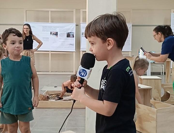 do que passear pelas ruas. Em Encantado, muitas vias são arborizadas e repletas de árvores frutíferas. Durante as caminhadas, as crianças logo perceberam as frutas: melancia, butiá, goiaba... A professora contou que, ao observarem um pé de goiaba, por exemplo, encontraram a minhoca dentro da fruta. A situação virou ponto de partida para novas descobertas. No estúdio, as crianças também participaram. Ao perguntar para Rafaela que fruta tinham visto no bairro, Ana Fausta ouviu a resposta espontânea: “Uma melancia”. Questionada se era grande ou pequena, a menina detalhou: “Uma pequeninha e uma grande”. E contou onde estava: “Tava lá no mato”. Pietro resumiu o passeio com entusiasmo: “Foi muito legal”. Ao lembrar da goiaba encontrada na praça, confirmou que havia “minhoca” dentro. Quando provocado sobre o que o bichinho fazia ali, respondeu com sinceridade: “Não sei”. Ana Paula destacou que a localização da Ciranda favorece as vivências. “Como a Ciranda está