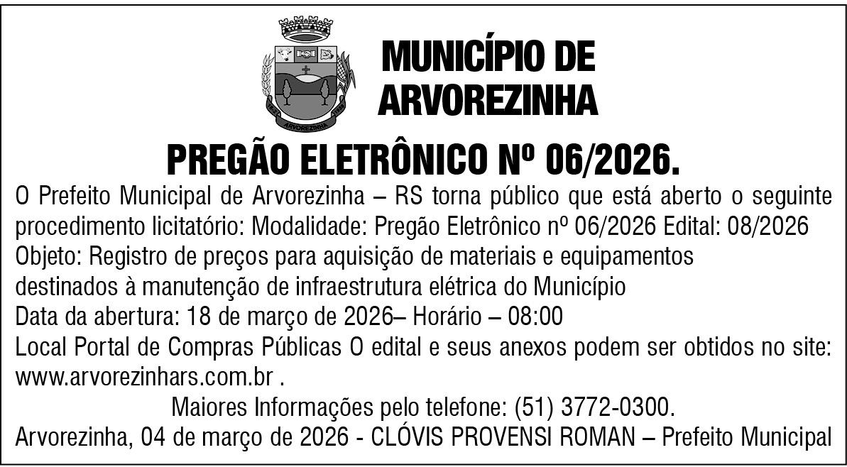 . A Defesa Civil Nacional confirmou o repasse de R$ 3,8 milhões para o município de Arvorezinha. O valor contemplará a recuperação de cinco pontes no interior. Uma das estruturas fica na Linha Sabadin, divisa com Ilópolis, com investimento de R$ 1 milhão.