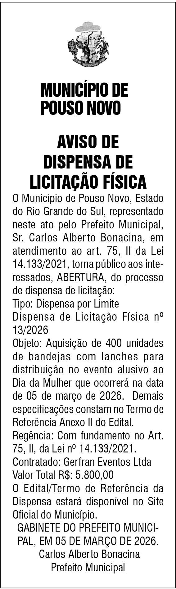 - Vereador em Estrela, Luís Kalsing (PL) solicitou licença médica pelo período de 15 dias, para tratar de uma cirurgia no joelho. E ainda não foi definido o substituto.