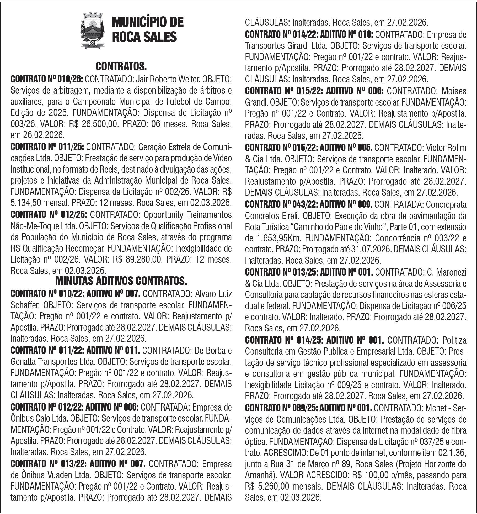 . Em Roca Sales, os vereadores aprovaram o repasse de R$ 320,9 mil ao governo para quitar dívidas trabalhistas do Hospital Roque González.
