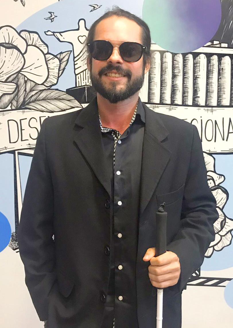 para conseguir o mínimo. Fizeram um processo para tentar impedir que eu cursasse engenharia. Mas passei em um concurso na própria universidade e trabalhei em um núcleo justamente de adaptação dos alunos com deficiência. Quando me formei como engenheiro, fui buscar emprego na iniciativa privada. Quando ia para as entrevistas, as pessoas não viam o Rafael simpático, graduado, que falava outros idiomas. O que eles viam era uma bengala e óculos escuros, uma pessoa com deficiência. Olhavam só para as minhas limitações e por mais notas boas que eu tenha tido, boas experiências de estágio, eu nunca consegui emprego na iniciativa privada. Tive que enfrentar justamente um concurso público, que é muito difícil para qualquer um, com ou sem cota. Mas pra mim era mais fácil enfrentar um concurso público do que o preconceito.