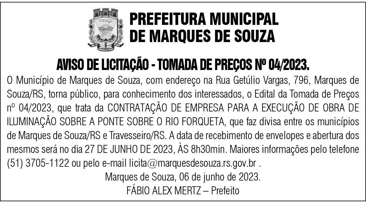 • Em Imigrante, o poder público quer lançar nova Campanha Municipal de Incentivo à Arrecadação, visando incentivar a aquisição de produtos e serviços das empresas do município. Para isso, o governo vai realizar sorteios para distribuir R$ 20 mil em prêmios em dinheiro.