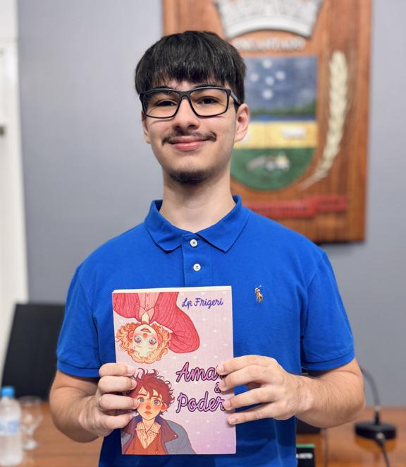 O jovem escritor Luís Pedro Coser Frigeri, 18 anos, lançou seu mais recente livro, “Amar e Poder”, em evento na Câmara de Vereadores de Encantado. Encantadense, Luís iniciou a trajetória literária ainda na infância, com a publicação de “O Tolo da Colina”, aos 12 anos. Em