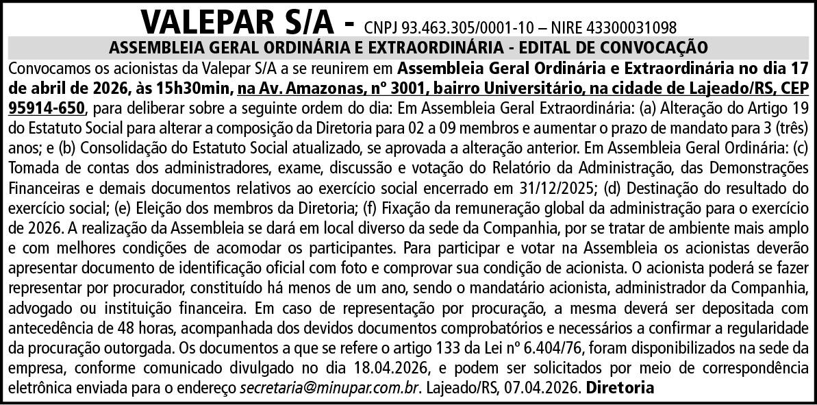 Assumo um novo desafio com responsabilidade e gratidão por tudo o que vivi em Arroio do Meio. Levo comigo uma experiência construída em um dos cenários mais adversos possíveis, que exigiu rapidez na tomada de decisão, sensibilidade na condução das pessoas e dos processos e muita firmeza nos princípios. Pretendo seguir aplicando esses aprendizados, sempre guiado pelos valores da fé, integridade, proximidade, humildade, responsabilidade e serviço. Tenho convicção de que essa trajetória me tornou mais forte, mais resiliente e mais preparado para contribuir de forma ainda mais significativa na nova etapa e nas próximas que virão. Os artigos e colunas publicados não traduzem necessariamente a opinião do jornal e são de inteira responsabilidade de seus autores. Impressão Zero Hora Gráfica