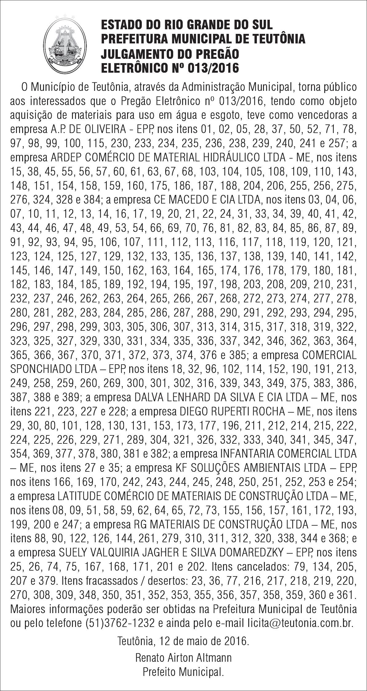 Fechamento da edição: 21h Lajeado, sexta-feira, 13 de maio de 2016 Ano 13 - Nº 1591