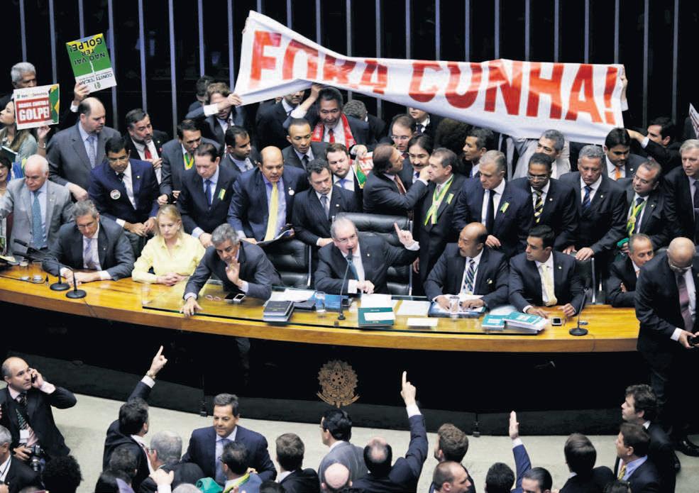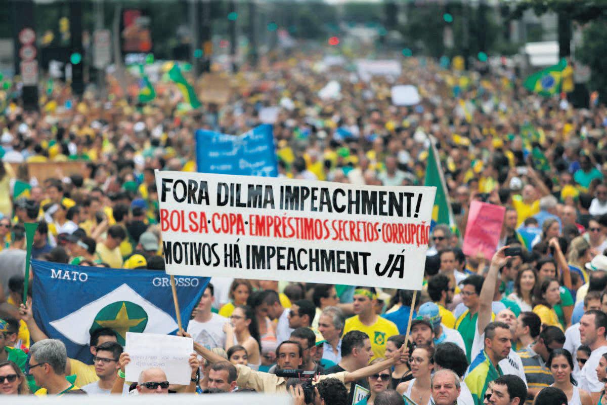 meçaram assim que o resultado das eleições de 2014 foi conhecido. Porém, o impeachmentsófoiacatadoemdezembro de 2015 pelo presidente da Câmara, Eduardo Cunha (PMDB/RJ). Desafeto do governo, ele aceitou o processo um dia após o PT ser favorável à sua cassação. que fará “um governo de salvação”. Já Dilma frisou que não repetirá Fernando Collor, que renunciou o cargo às vésperas de ser julgado pelo Congresso. Apetistaconclamouosmovimentossociais a tomarem as ruas em defesa de seu mandato.