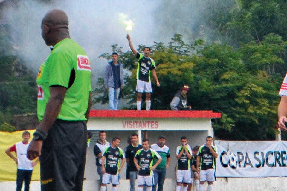 Após ser expulso, ainda no primeiro tempo da final do municipal de Arroio do Meio, o volante do Amigos, Rafael Dutra, subiu no banco de reservas do time e agitou a torcida com sinalizadores.