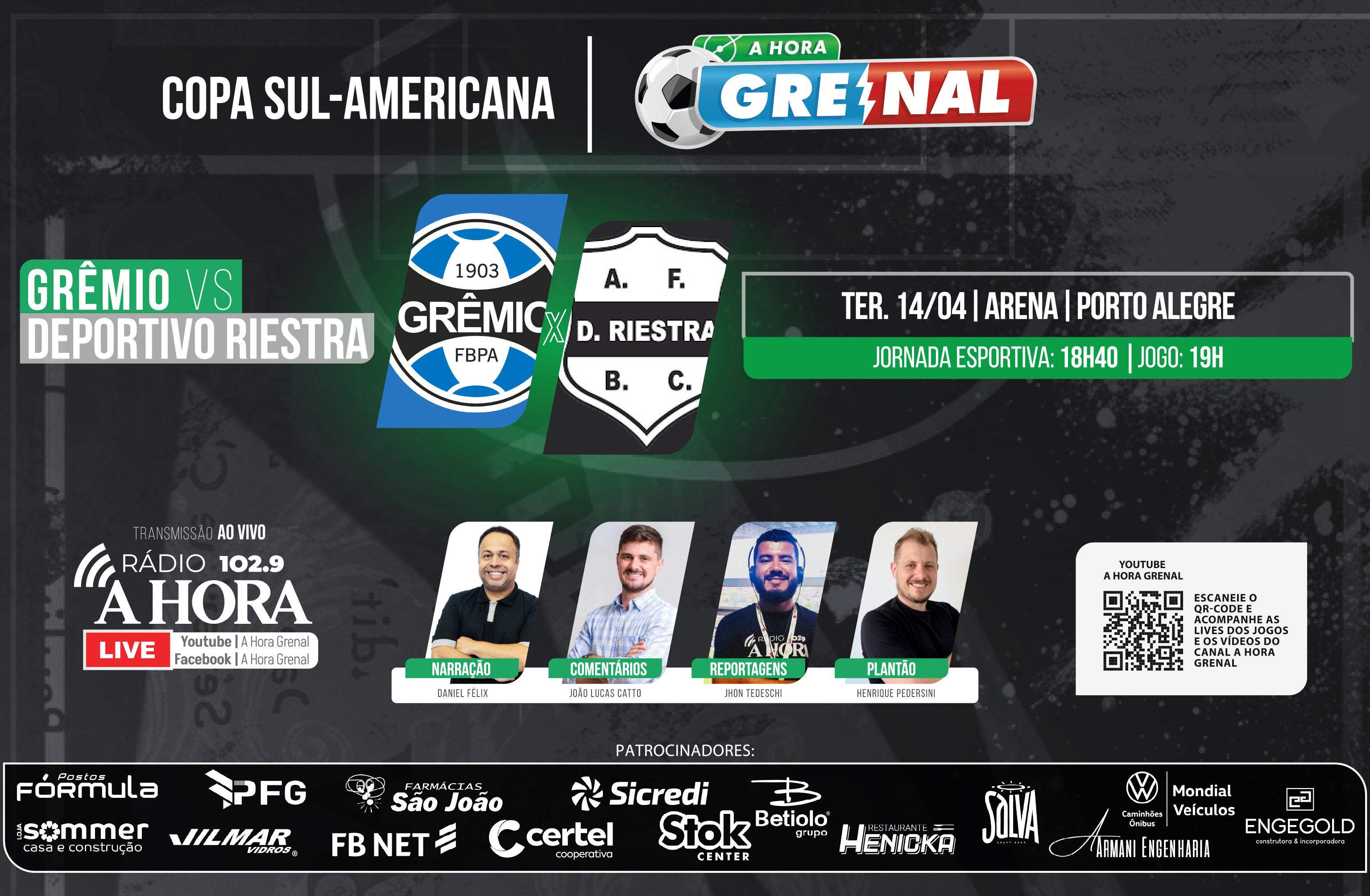 Deportivo Riestra, em partida válida pela segunda rodada da Copa Sul-Americana. A bola rola às 19h, na Arena, com transmissão da Rádio A Hora.