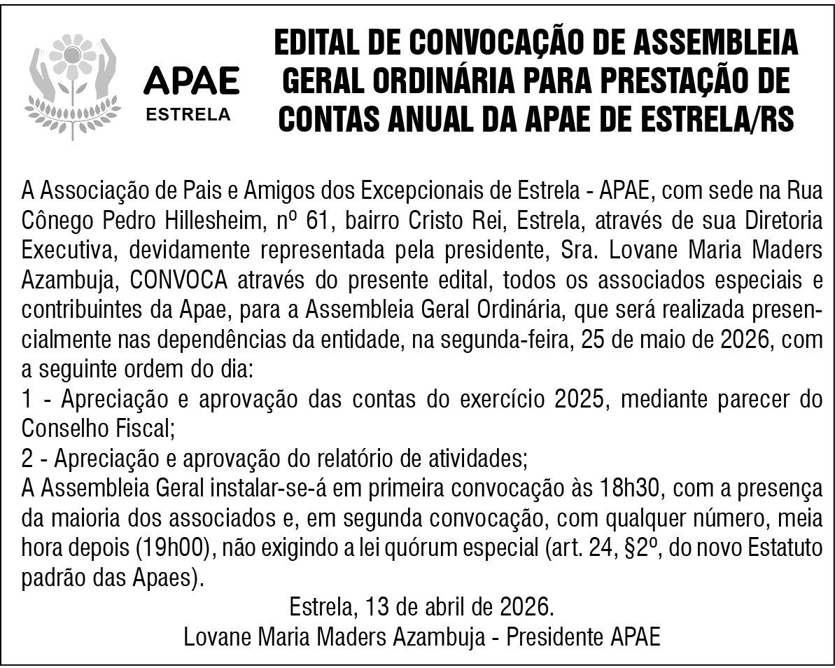 - Também em Estrela, o vereador suplente Pedrinho Barth (PP) protocolou projeto de lei para criar o programa Bombeiro Mirim no município. O objetivo é treinar os estudantes para fomentar a cultura da defesa e da resiliência junto aos familiares, especialmente para enfrentar desastres climáticos.