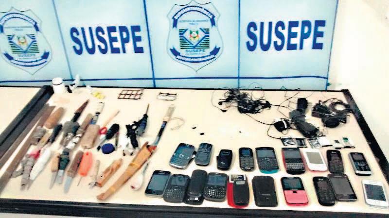 Nas celas, os presos escondiam drogas, além de 21 celulares e 25 facas artesanais