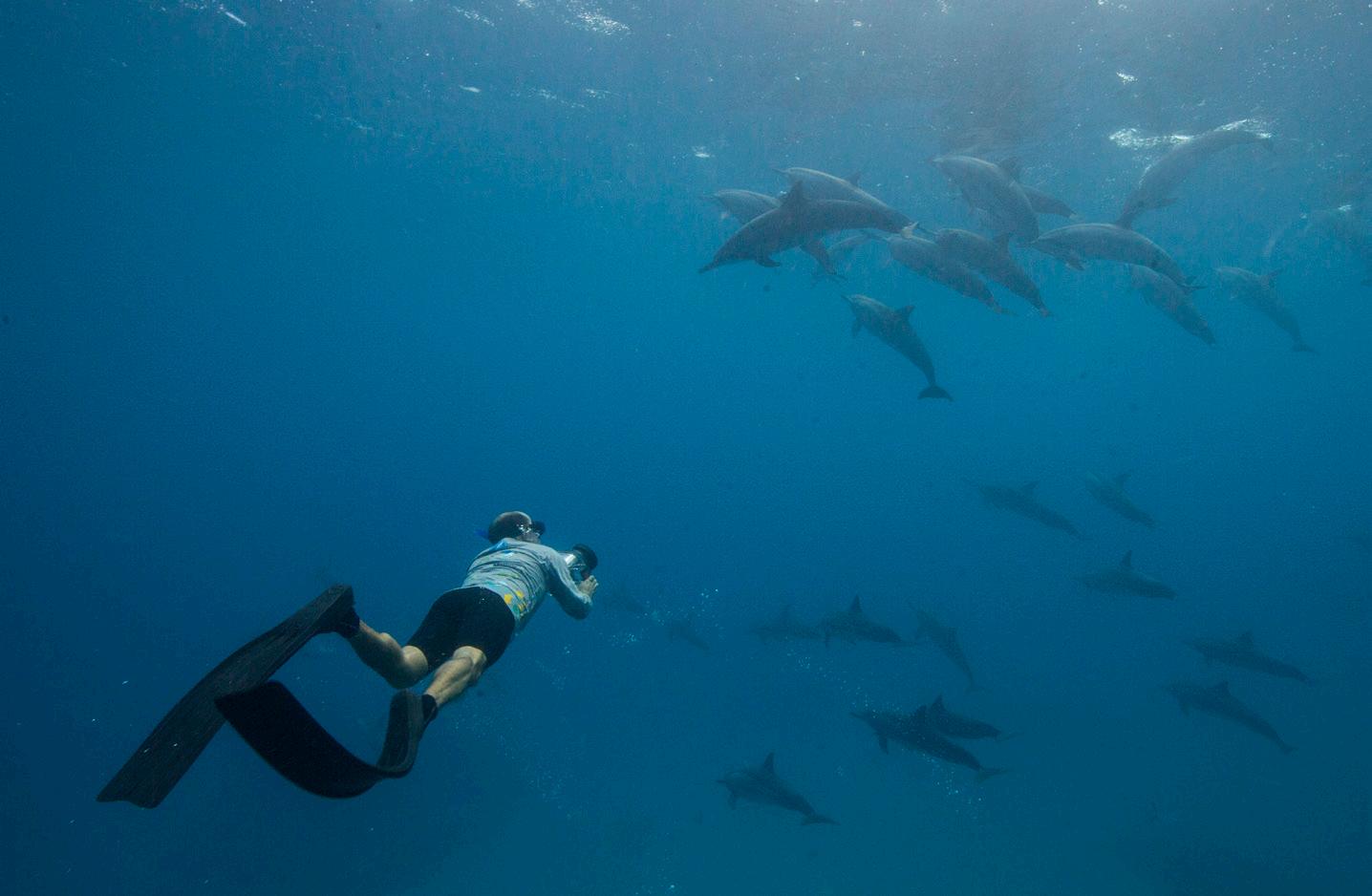Naquele mesmo dia, fui mergulhar na Baía dos Golfinhos e fiquei cercado por vários deles. Era meu aniversário. Entendi aquilo como um presente e decidi não recusar.
