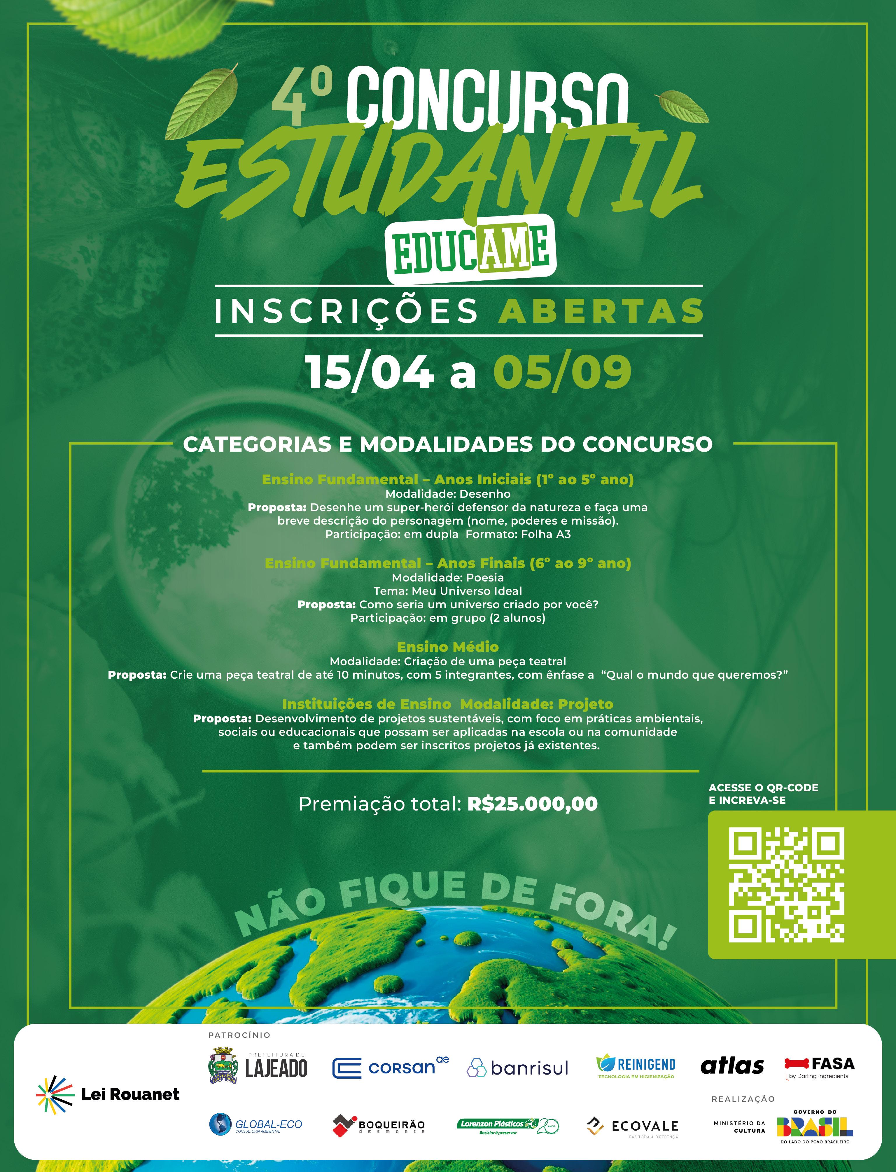 Como forma de incentivo e reconhecimento, os primeiros colocados receberão troféus e medalhas. Além disso, todos os participantes ganharão uma camiseta alusiva ao evento, reforçando o espírito de participação e pertencimento.