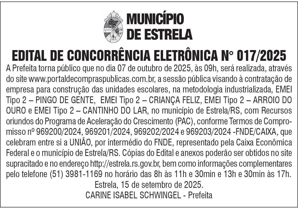 A construção da nova ponte sobre o Rio Taquari é de vital importância para a plena recuperação e desenvolvimento da região. Mas, e isso precisa ser bandeira dos nossos líderes políticos, associativistas e empresariais, não podemos permitir que o Estado se utilize desse empreendimento para “passar a borracha” em outros projetos do Vale do Taquari já protocolados no Fundo de Reconstrução do Rio Grande do Sul (Funrigs). Ora, o Vale não foi só a região mais destruída pela trágica enchente de maio de 2024, a pior catástrofe natural já registrada em solo brasileiro. O Vale também foi destruído em setembro de 2023. Em síntese, sofremos em dobro. E por isso não podemos recuar. Até porque há outras tantas demandas sequer protocoladas junto ao Funrigs. Por ora, o governo estadual garante a sequência dos projetos, assim como outros investimentos milionários – e bilionário – em obras de logística e concessão. Mas é preciso ficar de olho!