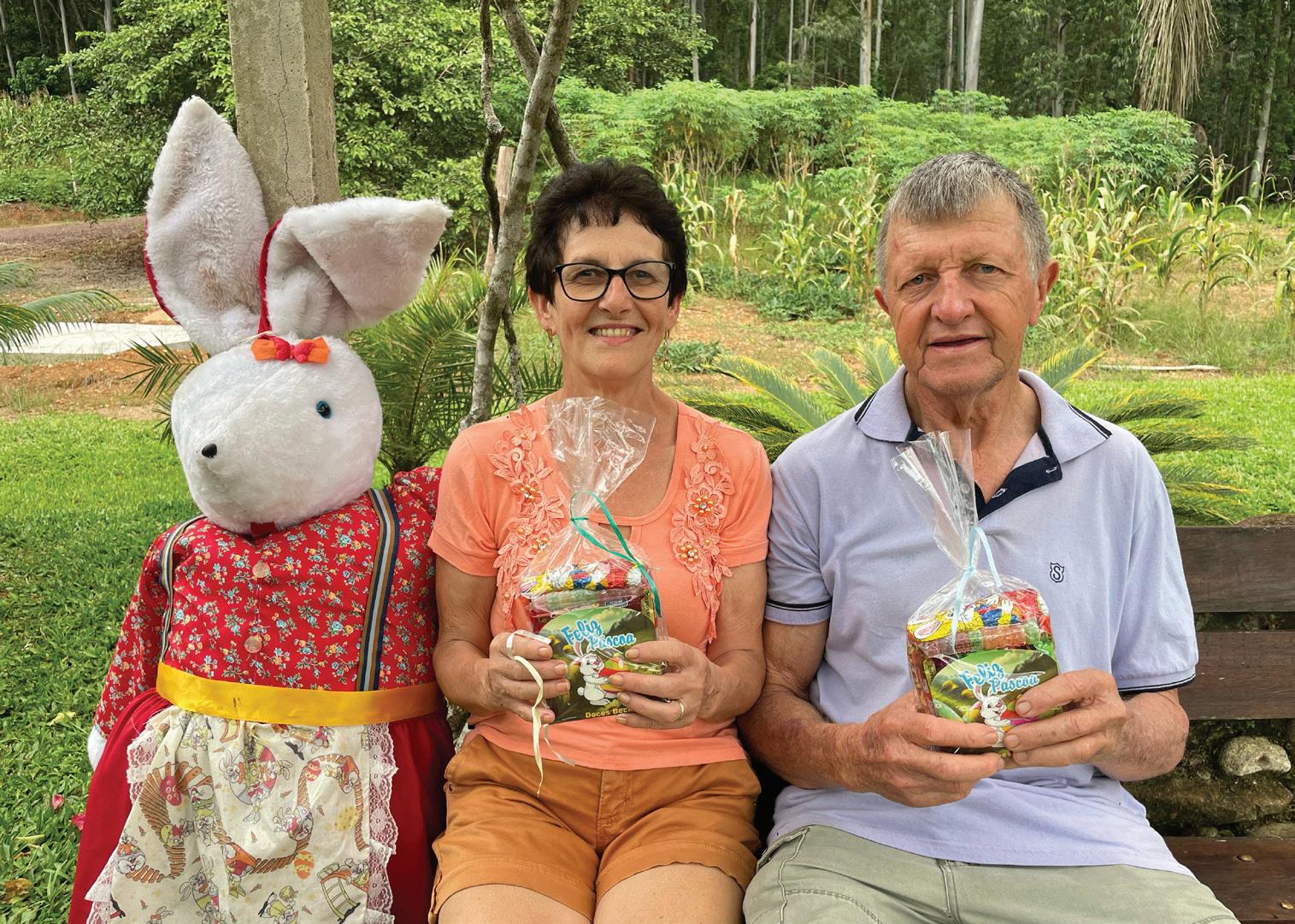 JulioSchwambach,69, natural e morador da comunidade de Arroio doOuro,emEstrela, promovehámaisde12 anosumatradiçãoque resgataamagiadaPáscoa. Comapoiodaesposa, RosaneSchwambach,64, transformaopátiodecasa empontodeencontropara dezenasdecrianças,que buscam ninhos escondidos entreárvores,enfeitese corredores naturais.Tudo começoudeformasimples, com lhosevizinhose,hoje, reúnemaisde50crianças daregião.Oobjetivoé mantervivaalembrançada infância e oferecer às novas geraçõesachancedesentir o encanto da data