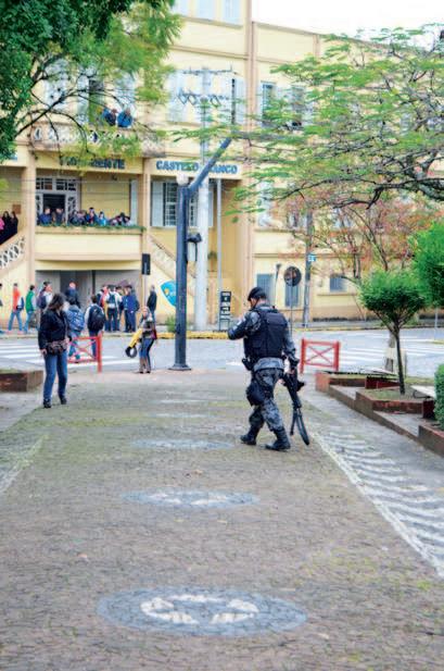 Inicialmente, cumpre esclarecer que a presença do policial militar não teve e nunca terá a função de assustar ou intimidar qualquer um dos manifestantes/ estudantes. A sua presença naquele local tinha apenas