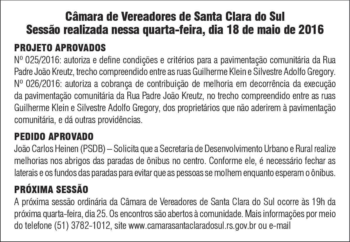 Fechamento da edição: 21h Lajeado, sexta-feira, 20 de maio de 2016