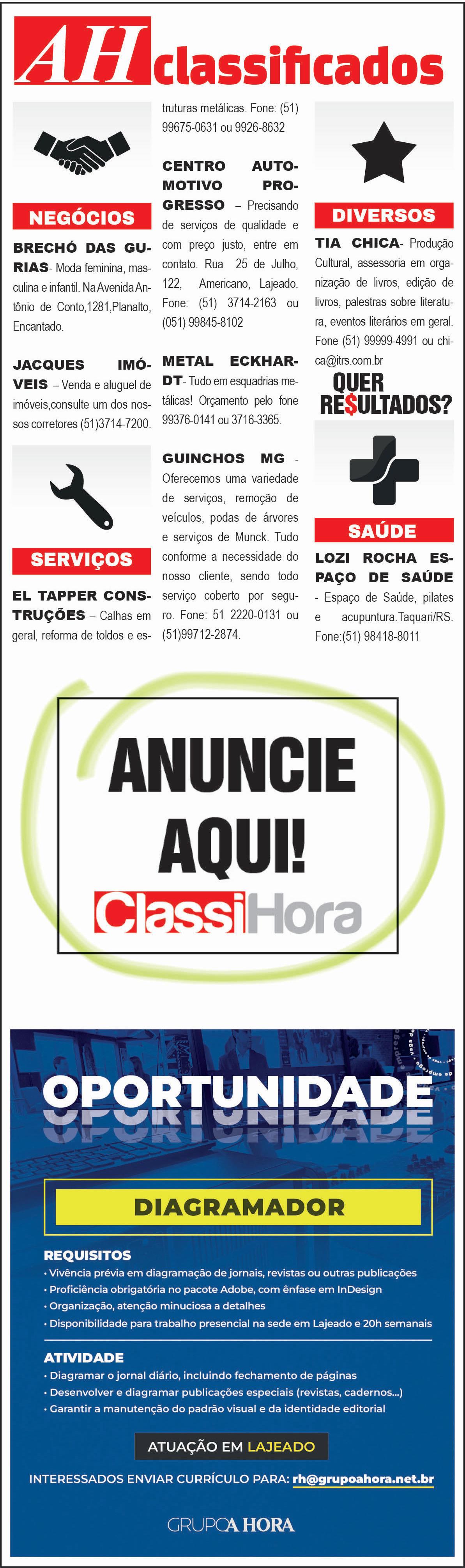 eletrônicos: Av. Benjamin Constant, 1034, Centro, Lajeado/RS grupoahora.net.br / CEP 95900-104