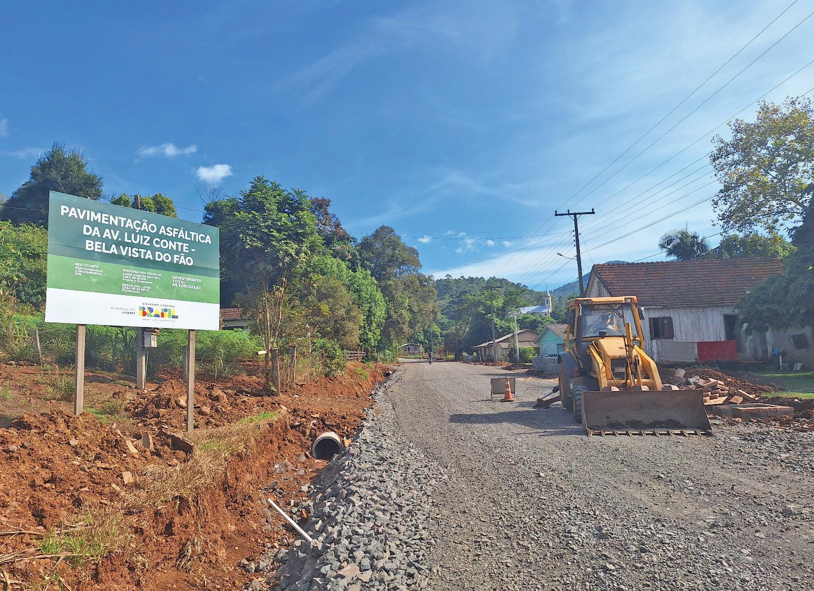 As obras de pavimentação no distrito de Bela Vista do Fão seguem em ritmo acelerado. A base para o asfalto já foi concluída, e as equipes trabalham na colocação de meio-fio, além da construção de bocas de lobo e canalização para o escoamento da água da chuva. O prefeito Fábio Mertz destaca a importância da obra. “Este investimento vai muito além do asfalto. Ele melhora a mobilidade da população, fortalece a infraestrutura da nossa cidade e gera impacto direto no desenvolvimento econômico e na qualidade de vida da comunidade local.”