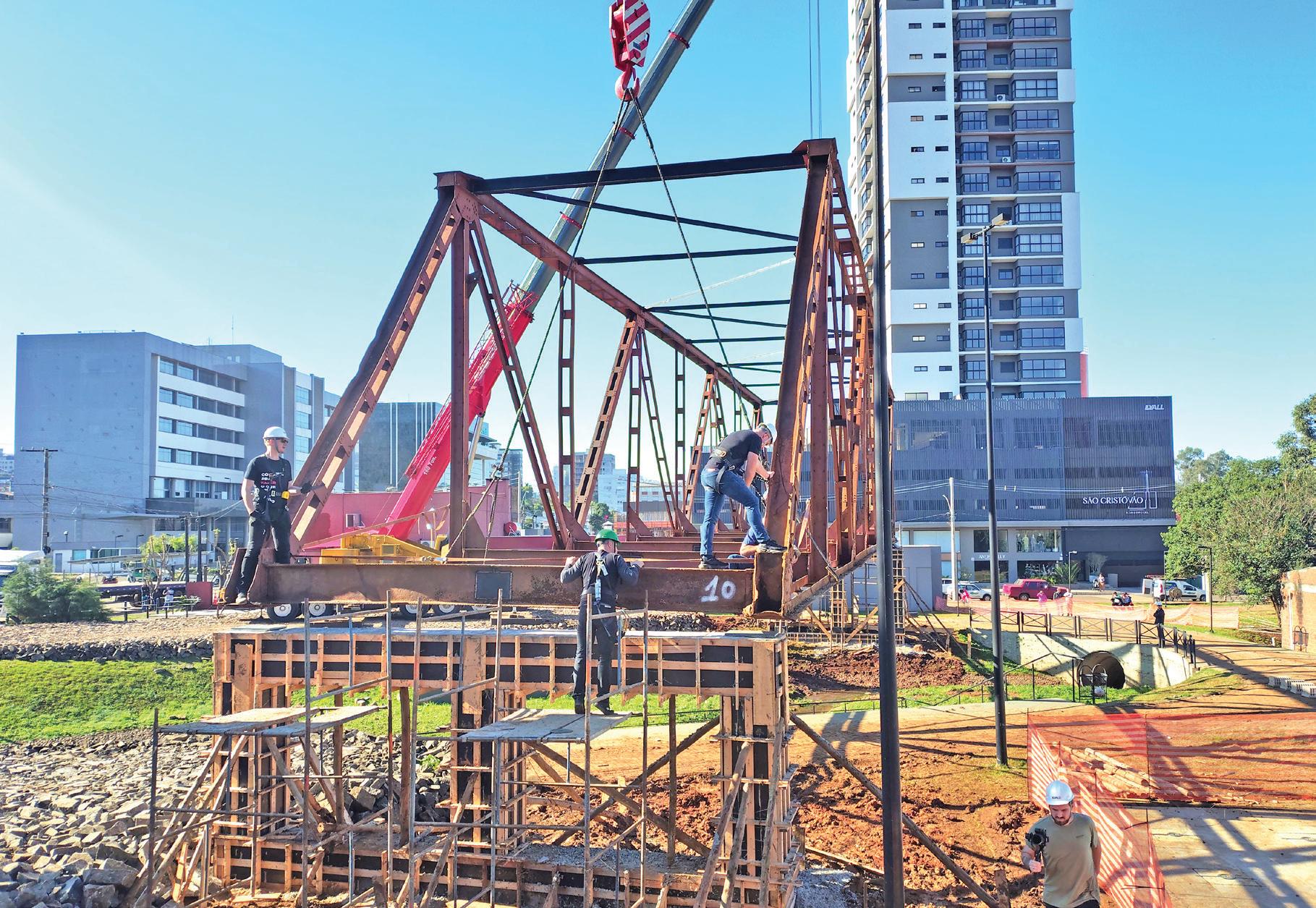 Com mais de 40 toneladas e 40 metros de vão livre, a estrutura histórica foi instalada com o apoio de guindastes e profissionais especializados. A operação iniciou no sábado, 19, e foi finalizada no