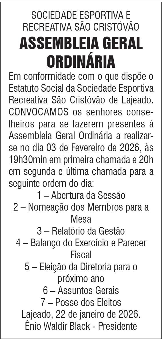 - Para reforçar: hoje ocorre a eleição virtual da nova diretoria da Associação dos Vereadores do Vale do Taquari (Avat). E o novo presidente será o vereador de Fazenda Vilanova, Sérgio Cenci (PP).