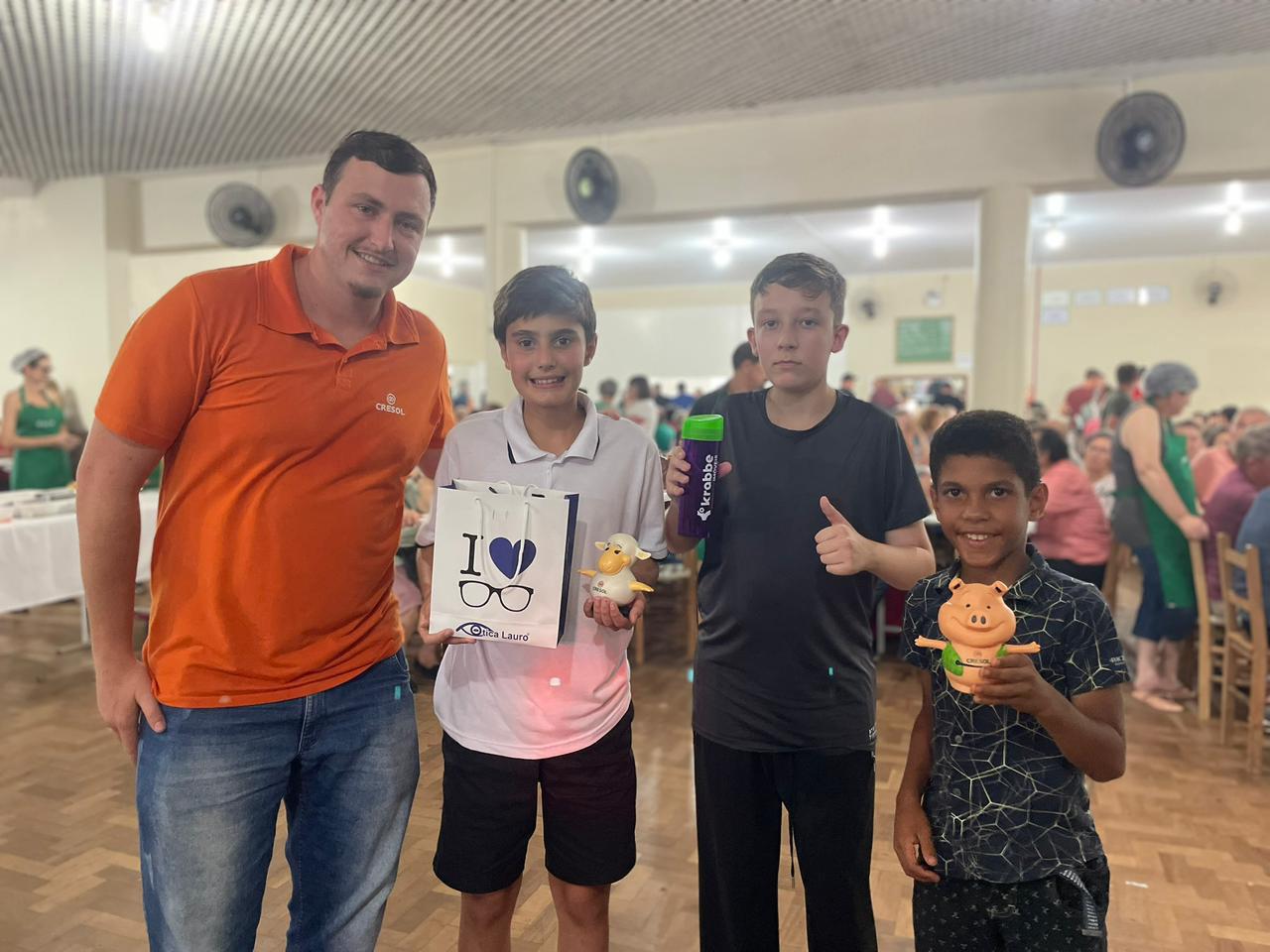 Os brindes distribuídos durante as atividades foram oferecidos pelos patrocinadores Certel, Cresol Essência, Redemac Moreli, Cervejaria Prost Bier, Nutritec, Ótica Lauro, Krabbe Imóveis e Grupo Diersmann, além de exemplares do livro Vale do Taquari, produzidos em parceria com a Amturvales.