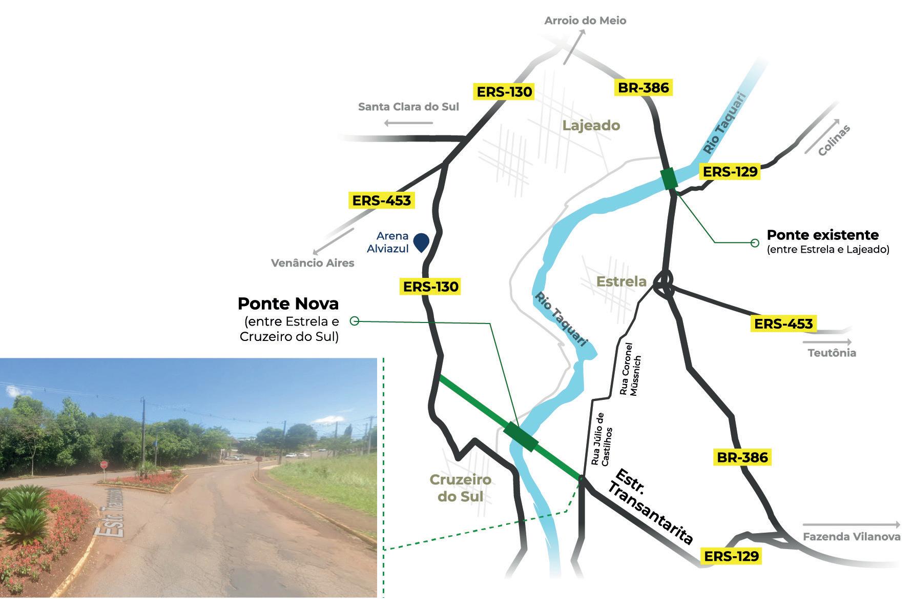 A atual ponte na BR-386, entre Lajeado e Estrela, já não suporta com eficiência o fluxo crescente de veículos e cargas. Além disso, durante as enchentes ficou clara a fragilidade e o risco, de a cada cheia, a região ficar isolada, prejudicando o transporte de mercadorias, o acesso a serviços essenciais e a mobilidade de milhares de pessoas.