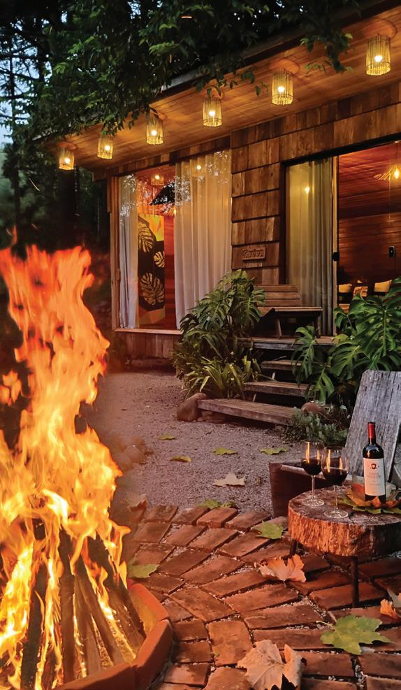 dialogam com o restante dos elementos de projeto. À noite, é possível criar diferentes cenários a partir dos efeitos das luminárias, com destaque aos pendentes minimalistas sobre a mesa de jantar.
