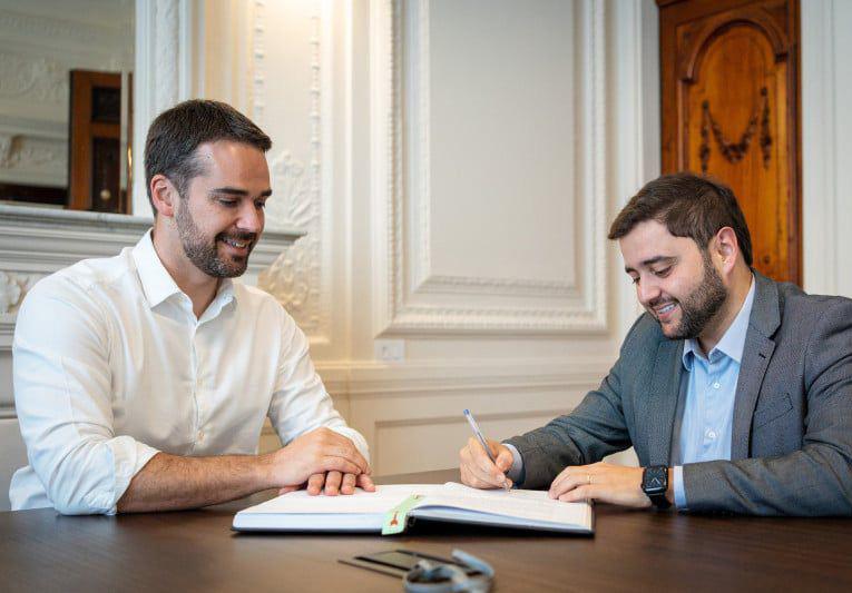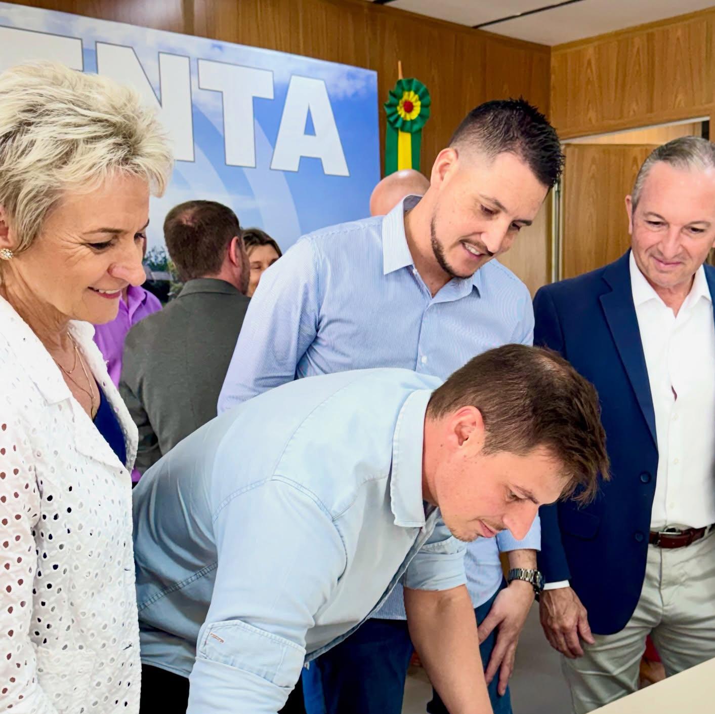 A assinatura ocorreu no Centro Administrativo Fernando Ferrari (CAFF), em Porto Alegre, com a presença do prefeito Vianei Noll e da vice-prefeita Inês Feil.