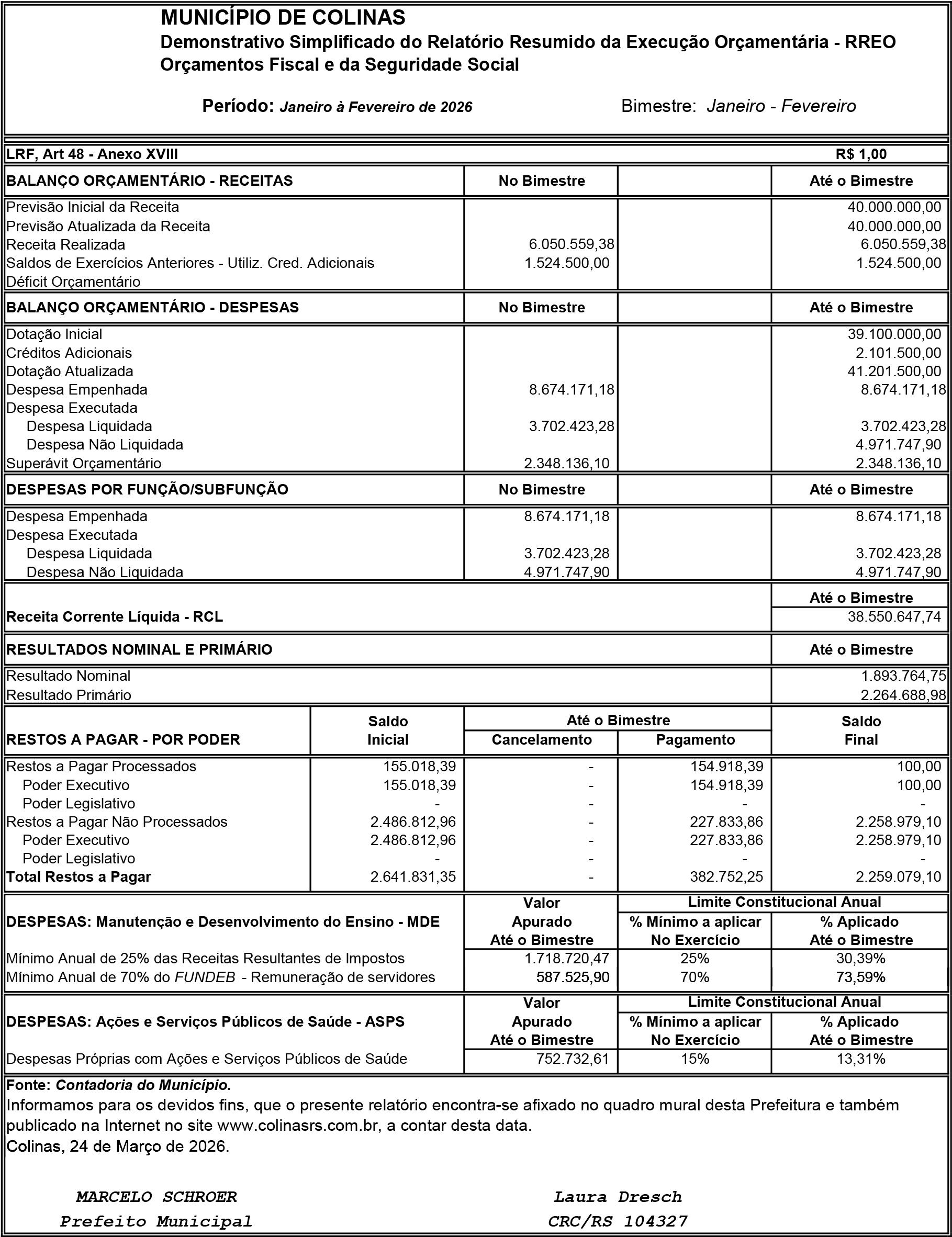 O prefeito Cesar Leandro Marmitt, o “Dingola”, também destacou a importância do resultado. Segundo ele, o índice vai além de uma obrigação legal. “Não é apenas uma meta superada, mas a prova concreta de que a gestão atua com transparência e coloca o bem-estar da população em primeiro lugar”, pontuou.