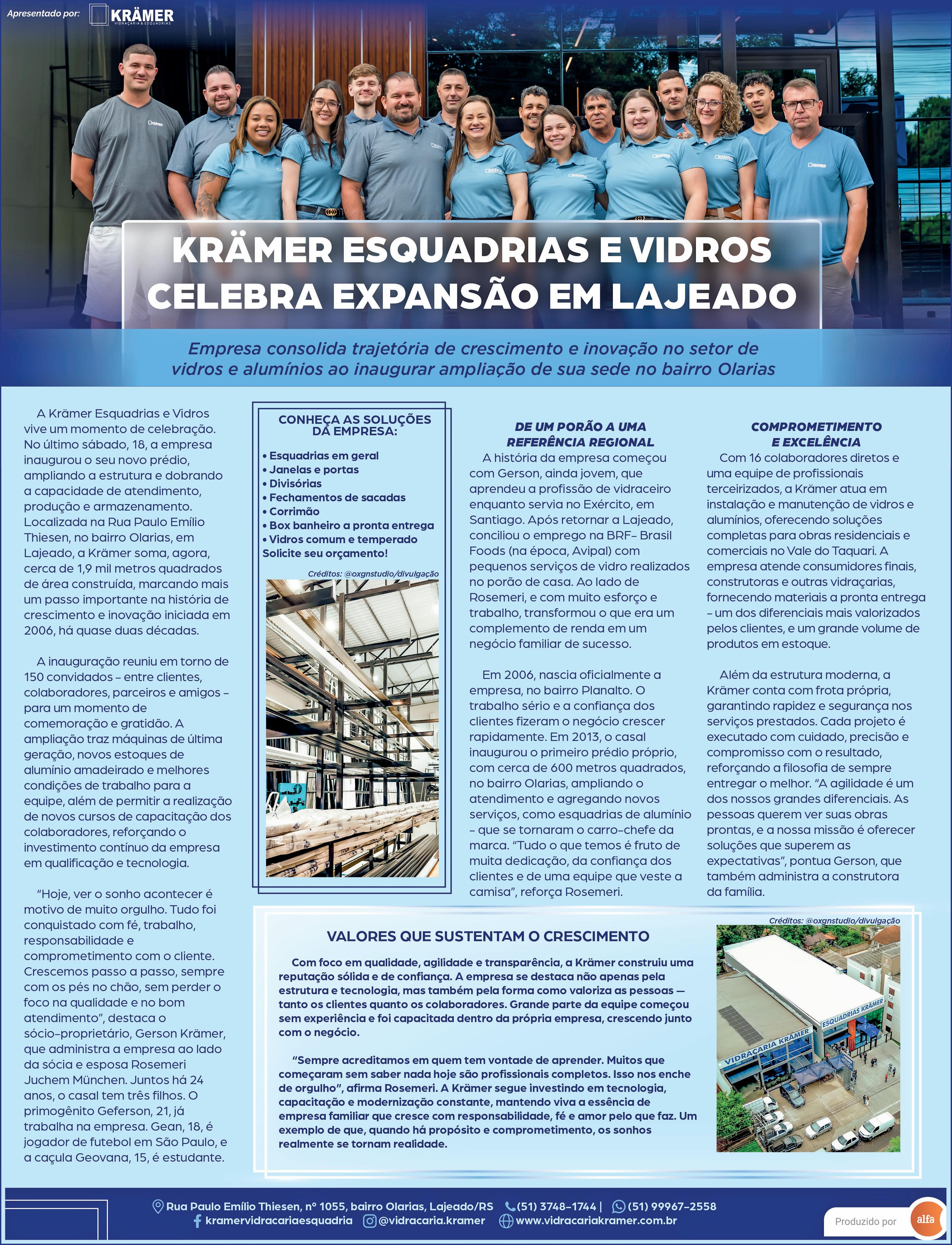 terrestres, exceto câmbio. Além disso, promove grupos de viagens próprios e em parceria com outras operadoras. Novos destinos estão previstos para 2026. Ontem, clientes e parceiros participaram de café da manhã comemorativo na sede da agência. Desde o ano passado, a empresa está instalada no prédio Hickmann select, em Lajeado.