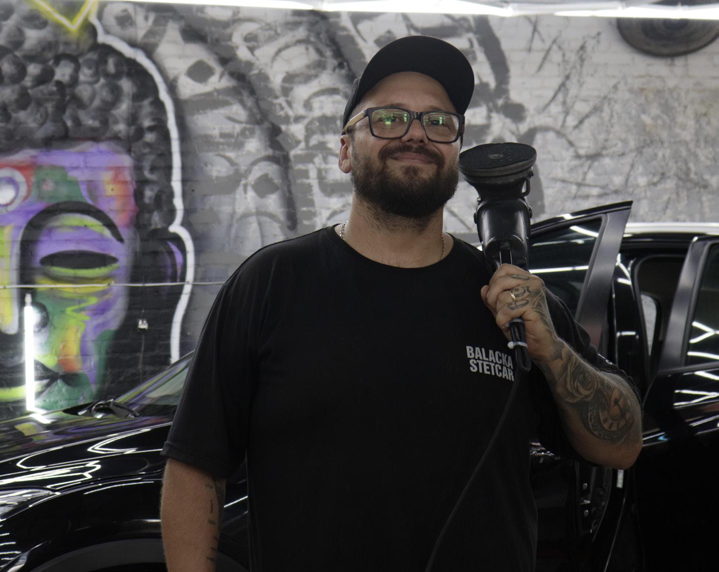 Do balde ao elevador: a trajetória da Balacka Siqueira começou lavando carro por necessidade. Nos finais de semana, quando o dinheiro apertava, oferecia o serviço para o patrão e para quem aparecesse. O gosto foi crescendo, e em 2018 ele fez o primeiro curso de estética automotiva (data que carrega tatuada no corpo). “Daí foi onde comecei a amar essa profissão, e conforme o tempo passa amo mais”, conta.